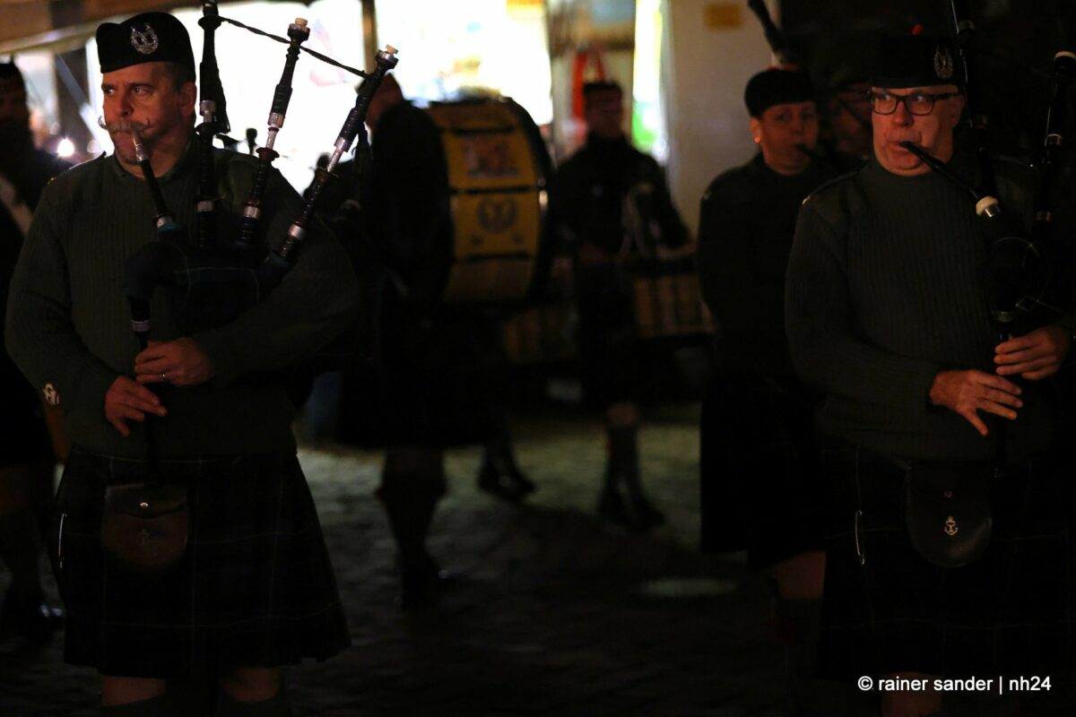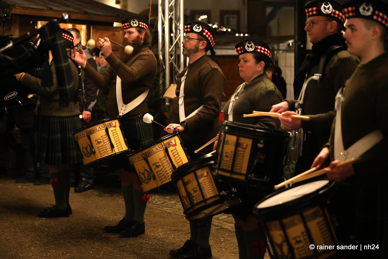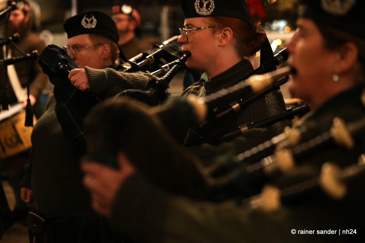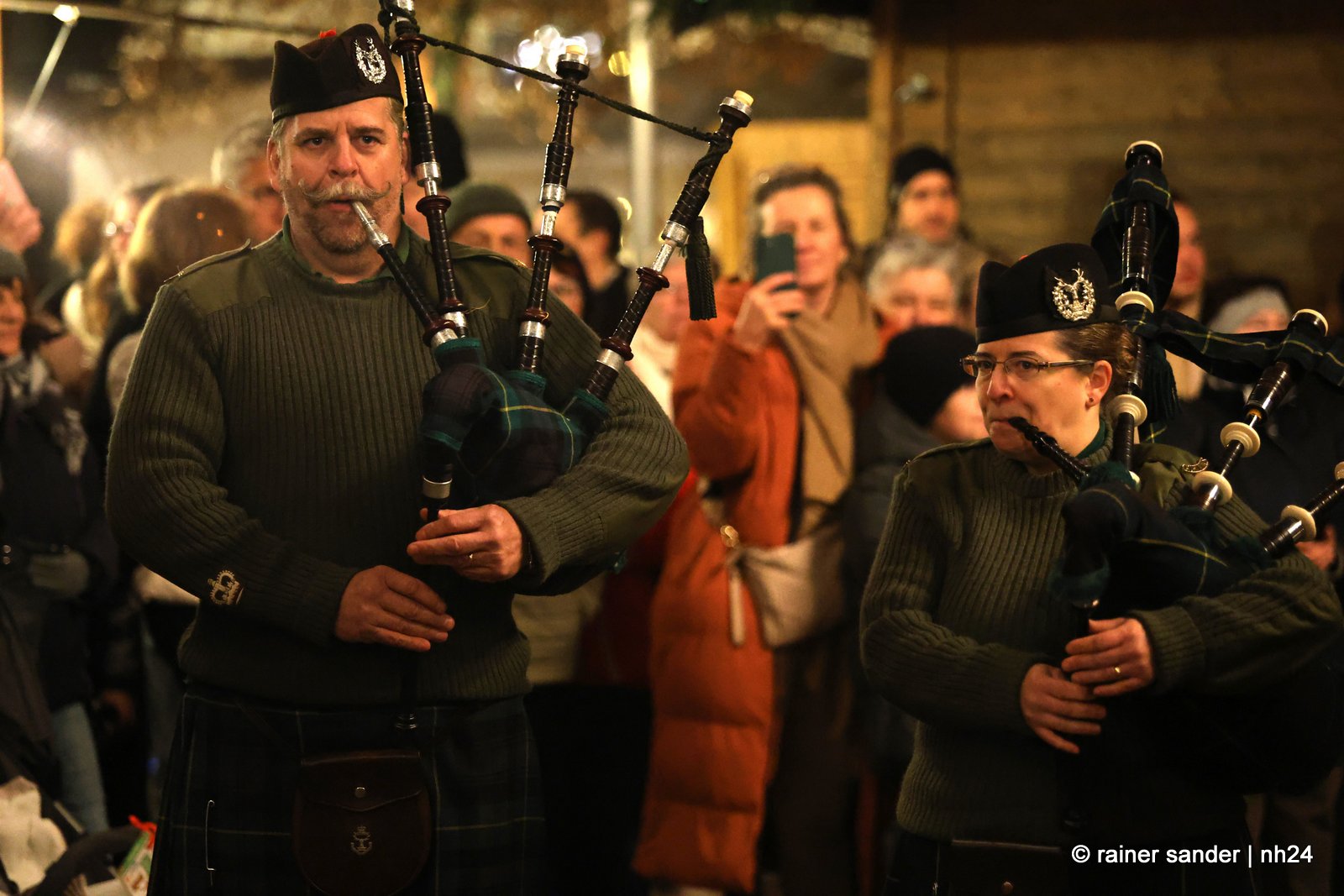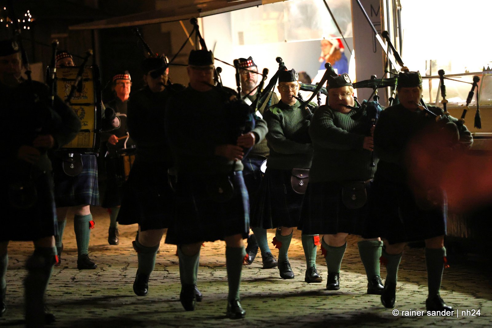 Zuvor marschierten „Targe of Gordon“ aus Fulda, inzwischen ein fester Bestandteil des Schwälmer Weihnachtsmarktes mit Trommeln und Dudelsäcken auf den Paradeplatz. Ob Auld Lang Syne, Scotland the Brave oder Amazing Grace, jeder Titel sorgte für Gänsehaut. Targe of Gordon trägt die originalgetreue Regimentsuniform „Full No.1 Dress“ der ehemaligen Drums and Pipes of the 1st Batallion the Gordon Highlanders und wurden im Jahr 2002 in die Regimental Association des ehemaligen königlichen Regiments von Prince Charles aufgenommen.