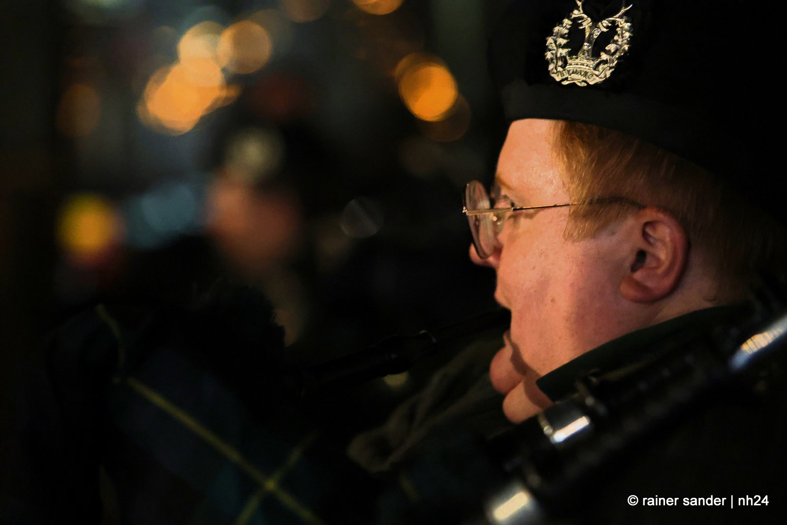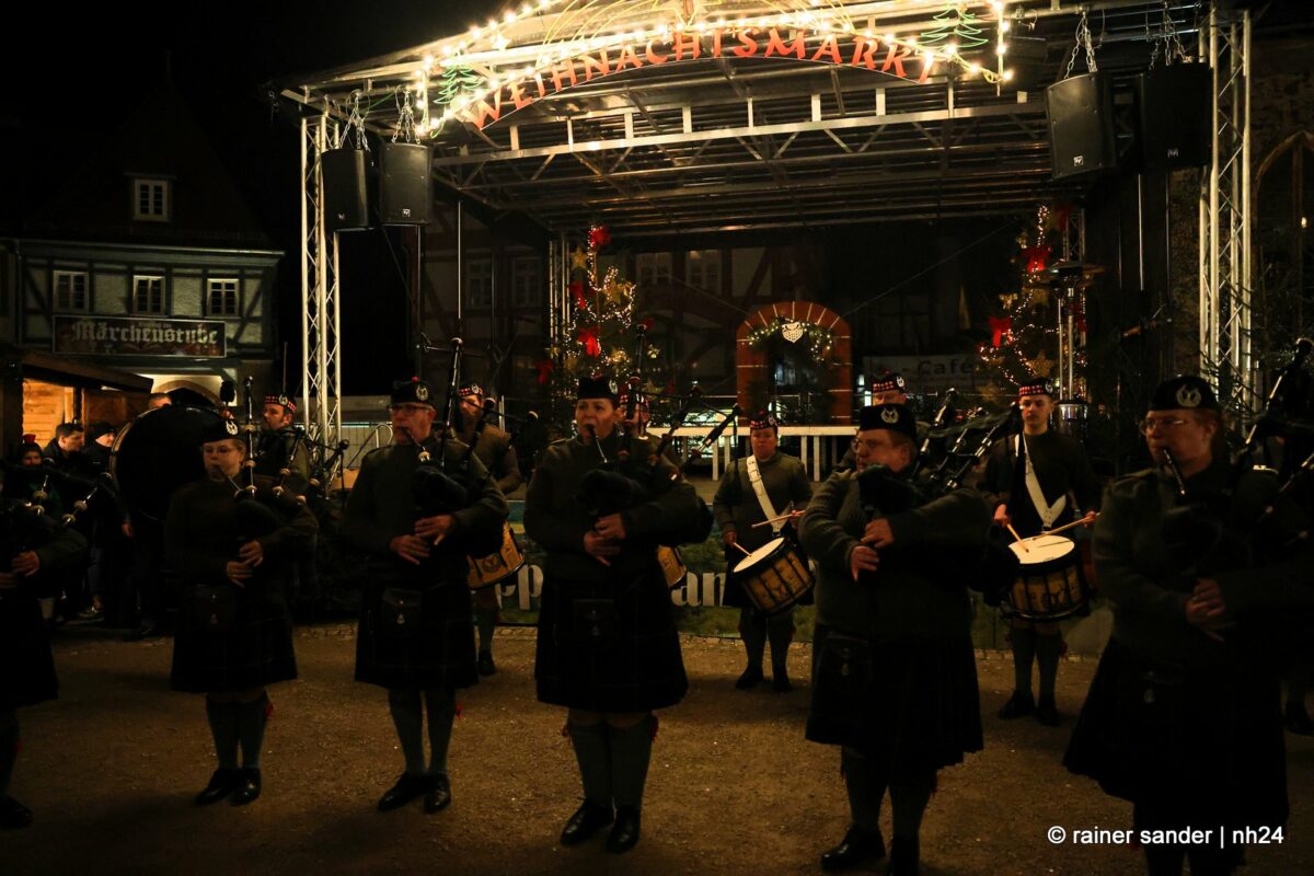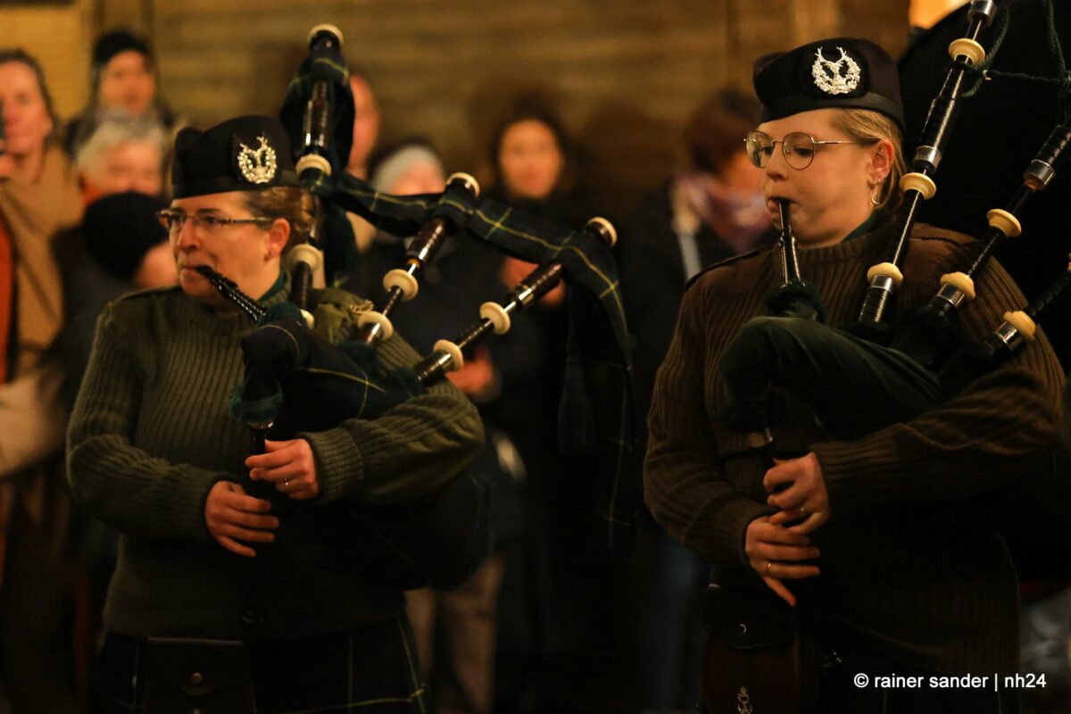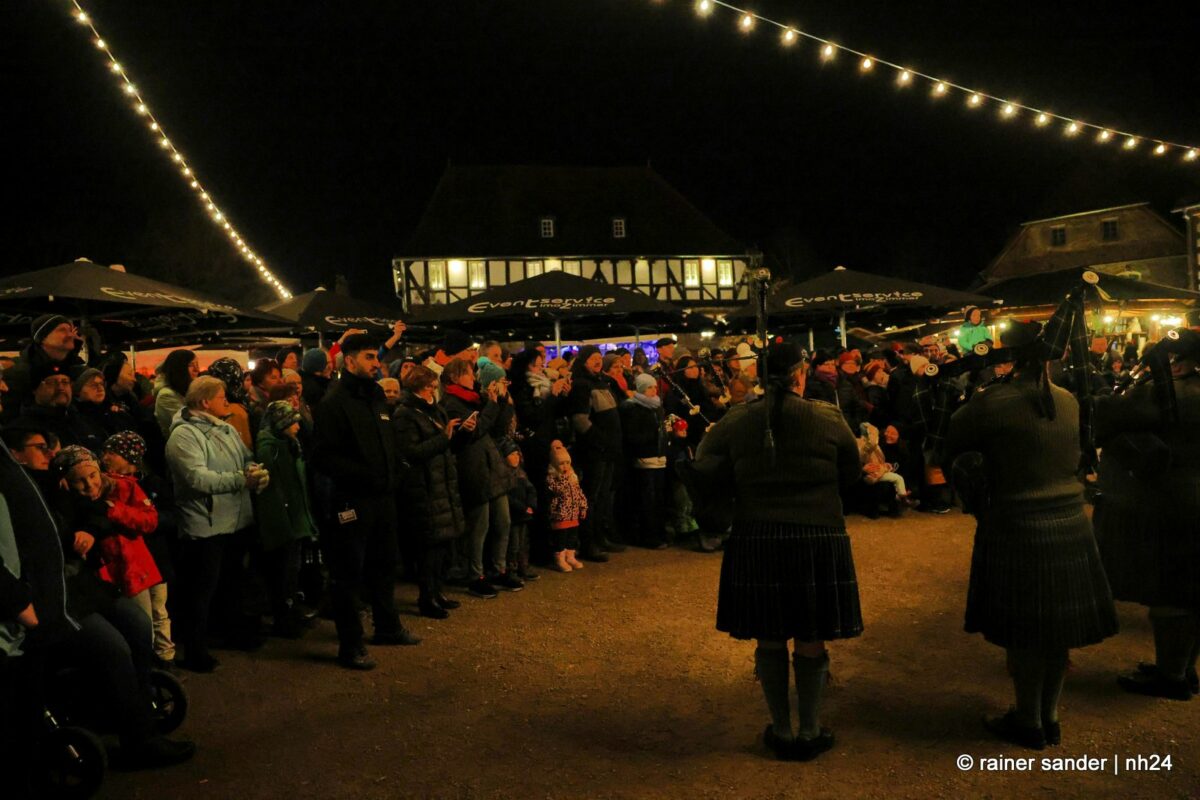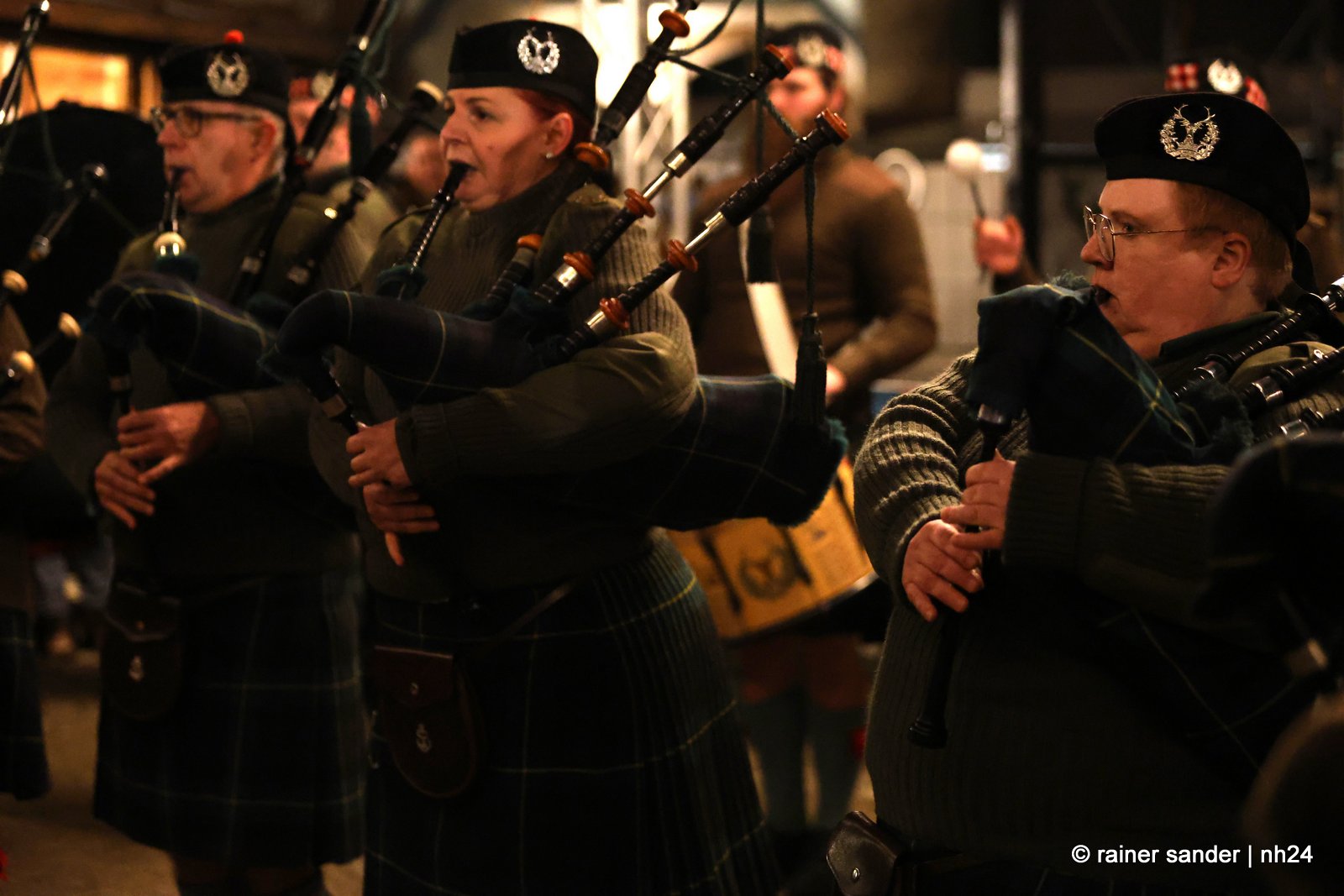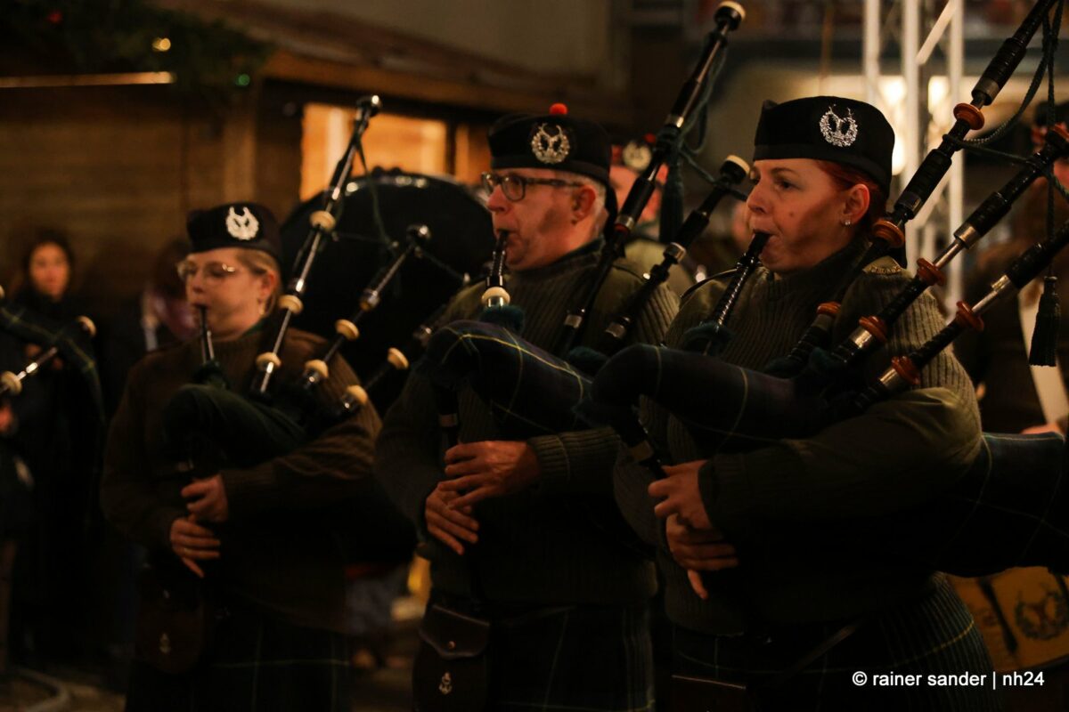 Zuvor marschierten „Targe of Gordon“ aus Fulda, inzwischen ein fester Bestandteil des Schwälmer Weihnachtsmarktes mit Trommeln und Dudelsäcken auf den Paradeplatz. Ob Auld Lang Syne, Scotland the Brave oder Amazing Grace, jeder Titel sorgte für Gänsehaut. Targe of Gordon trägt die originalgetreue Regimentsuniform „Full No.1 Dress“ der ehemaligen Drums and Pipes of the 1st Batallion the Gordon Highlanders und wurden im Jahr 2002 in die Regimental Association des ehemaligen königlichen Regiments von Prince Charles aufgenommen.