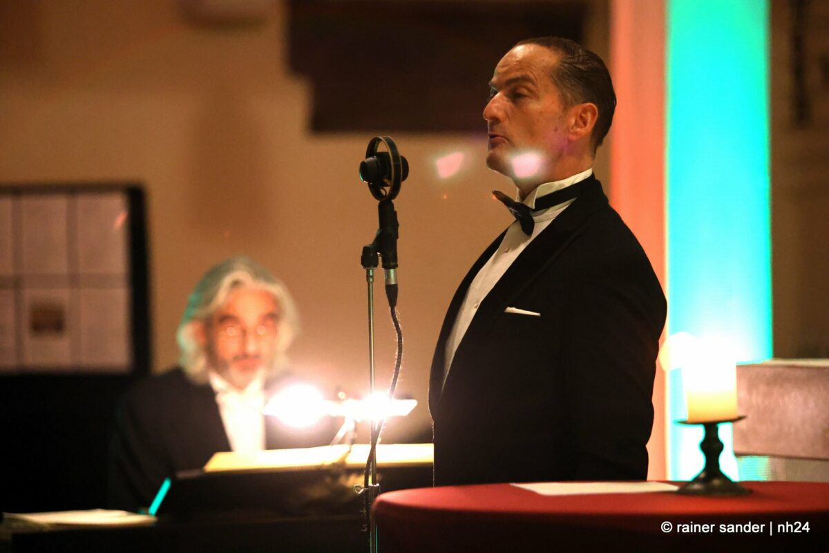 „Ich steh‘ mit Ruth gut, weil meine Ruth tut das, was mir gut tut, im Monat Mai“, klingt es zungenbrecherisch. Auch das hat Max Raabe gesungen. Geschrieben haben’s Fred Raymond und Robert Gilbert. Der Humor begleitet die beiden Künstler zum Beispiel beim Weihnachtsschlager mit Text von Erich Kästner: „Morgen Kinder wird‘s nichts geben!“ Schließlich heißt es, „Stille Nacht, Mainz bleibt Mainz, wie es singt und lacht!“ Wer hätte es gedacht, dass auch Hubert Kemmlers, besser bekannt als Hubert Kah, Sternenhimmel so klingen kann wie aus einem vergangenen Jahrhundert. Nicht fehlen durfte der kleine grüne Kaktus aus dem Jahr 1934 und damit war die Brücke geschlagen zu den Comedian Harmonists. Nach zwei Zugaben erklang es, „Gib mir den letzten Abschiedskuss, weil ich dich heut‘ verlassen muss …“