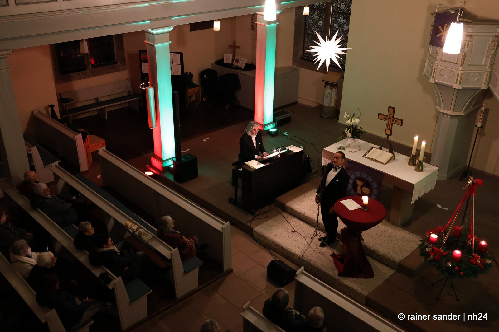 SCHWALMSTADT. Mit einem Konzert von Denis Wittberg vor rund 100 Besuchern in der Kirche ging der Schwälmer Weihnachtsmarkt 2023 am Sonntagabend gegen 21:30 Uhr zu Ende. Der Künstler ist mal mit Kapelle und manchmal solo unterwegs. In Ziegenhain wurde er am Flügel begleitet von Jörg Walter Gerlach. Zu hören gibt es stets Lieder im Stil der Zwanziger und Dreißigerjahre.