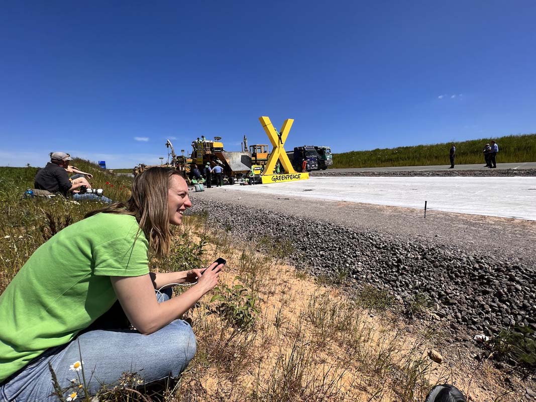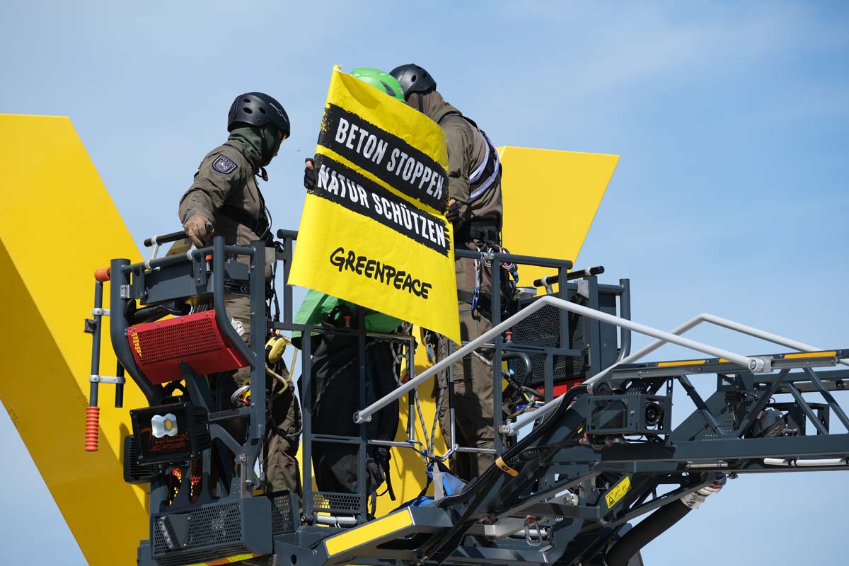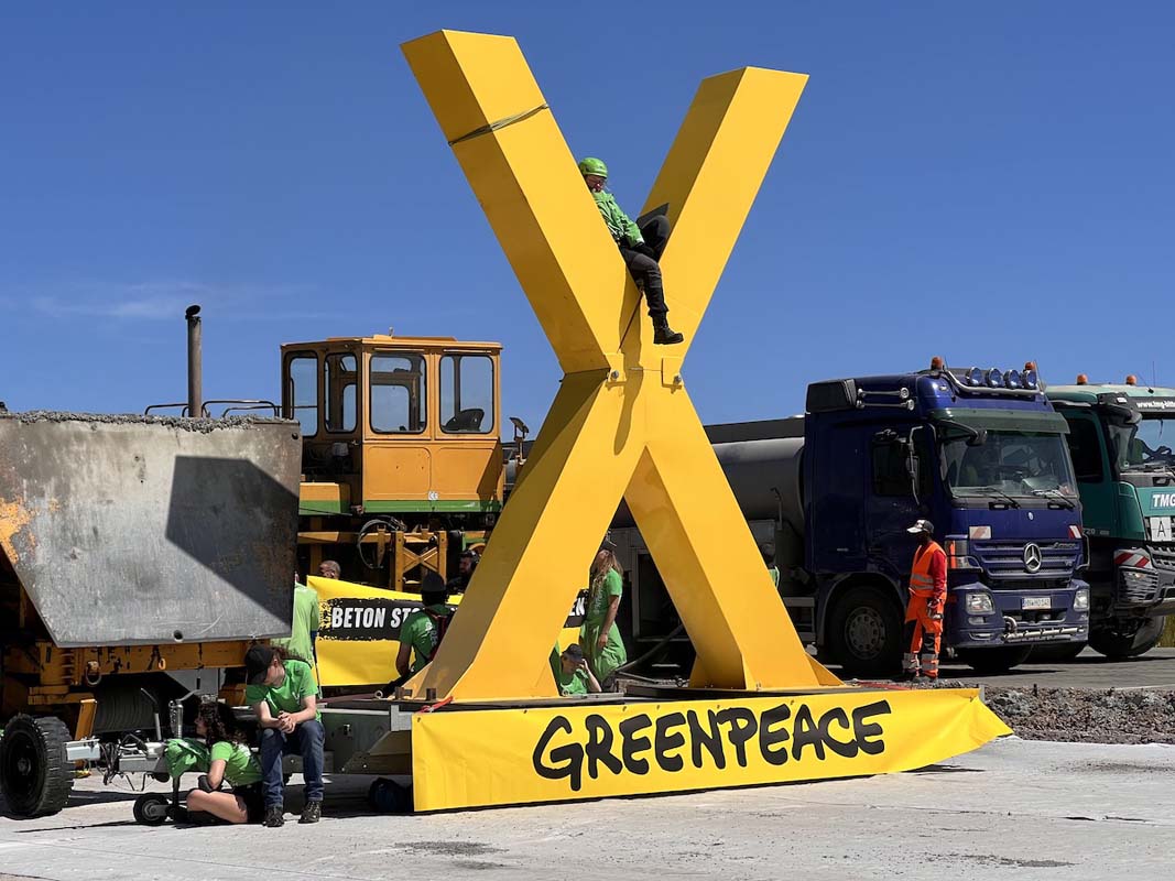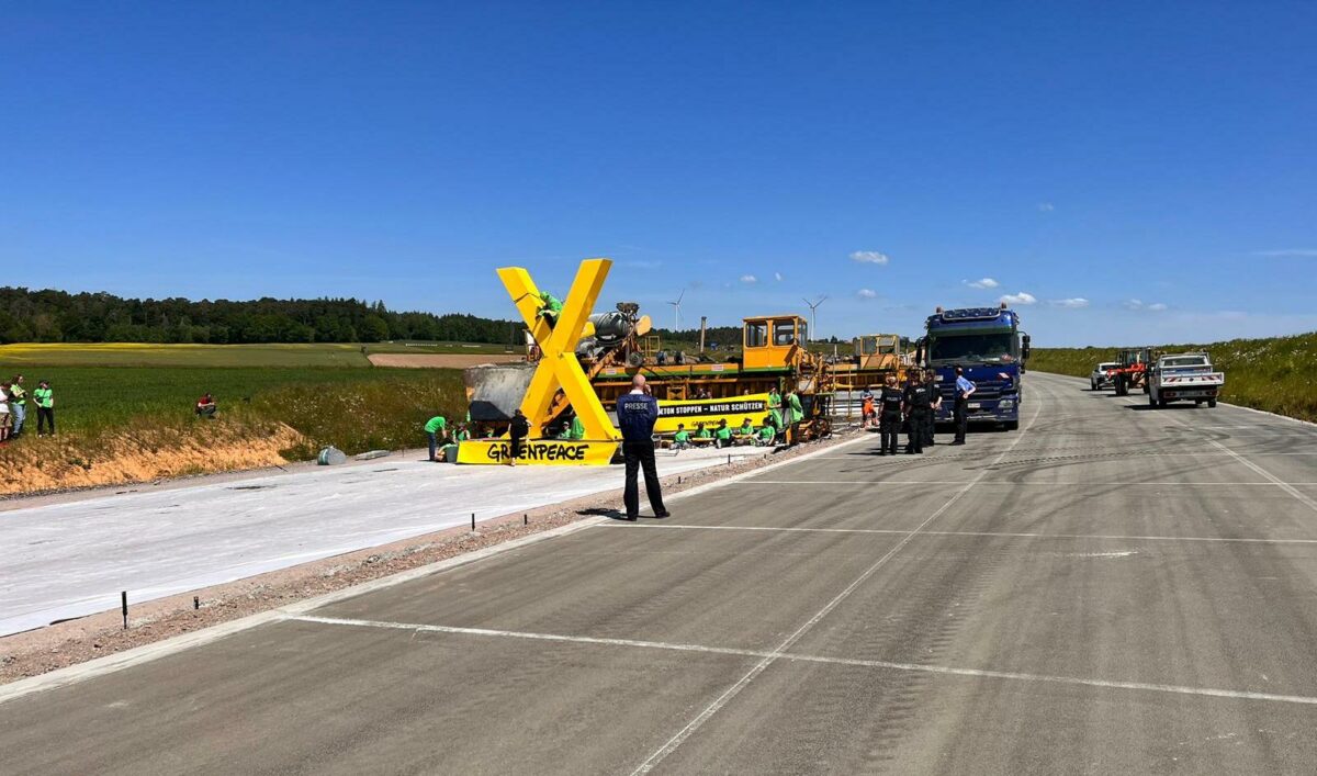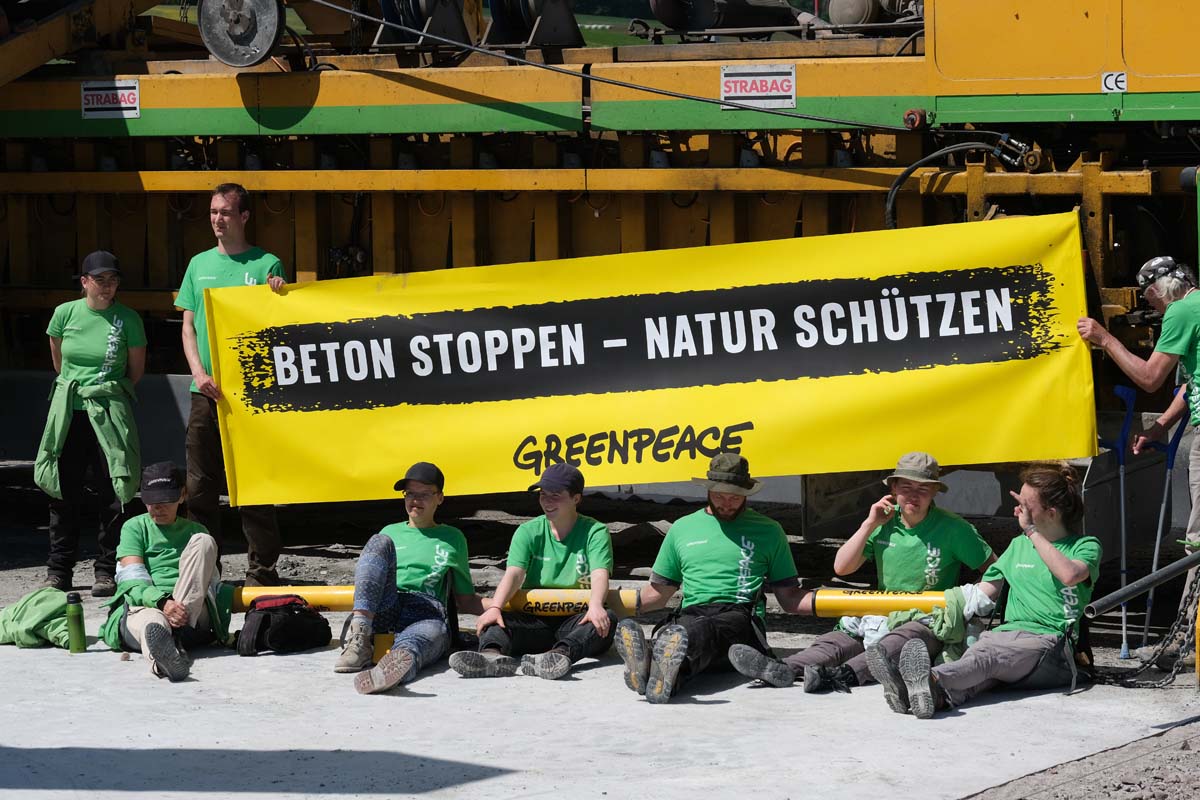 SCHWALMSTADT. 33 Aktivisten der Umweltschutzorganisation Greenpeace haben am Mittwoch an einer Protestaktion auf dem im Bau befindlichen Streckenabschnitt der Autobahn 49 in Schwalmstadt-Treysa (Schwalm-Eder-Kreis) demonstriert. Aktuell wird zwischen der Anschlussstelle Schwalmstadt und der in rund eineinhalb Kilometern Entfernung gelegenen Talbrücke die Südfahrbahn betoniert.