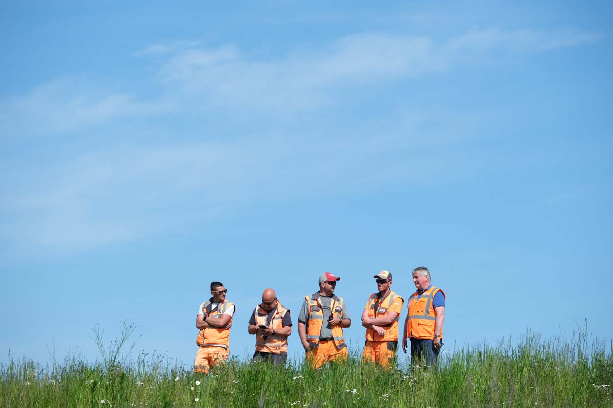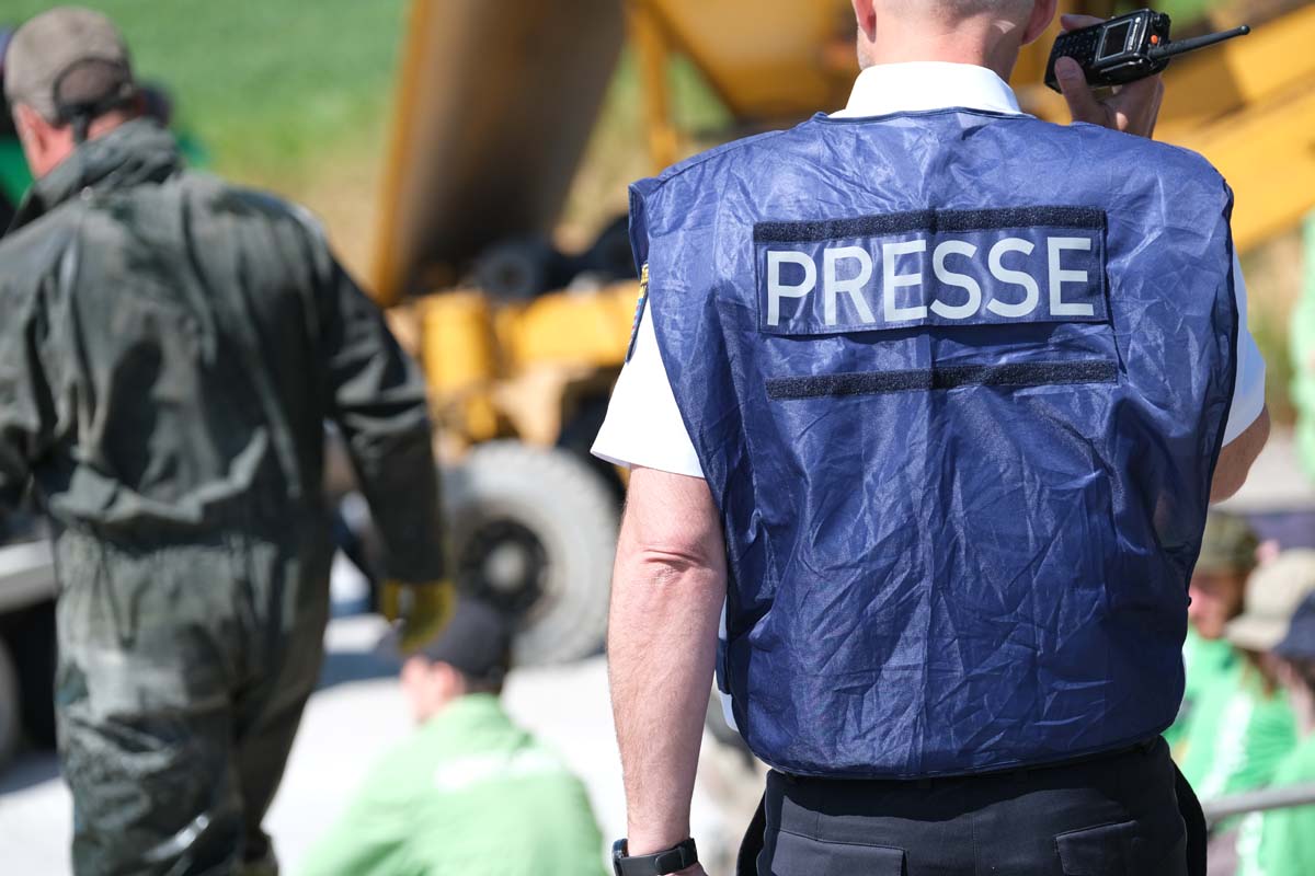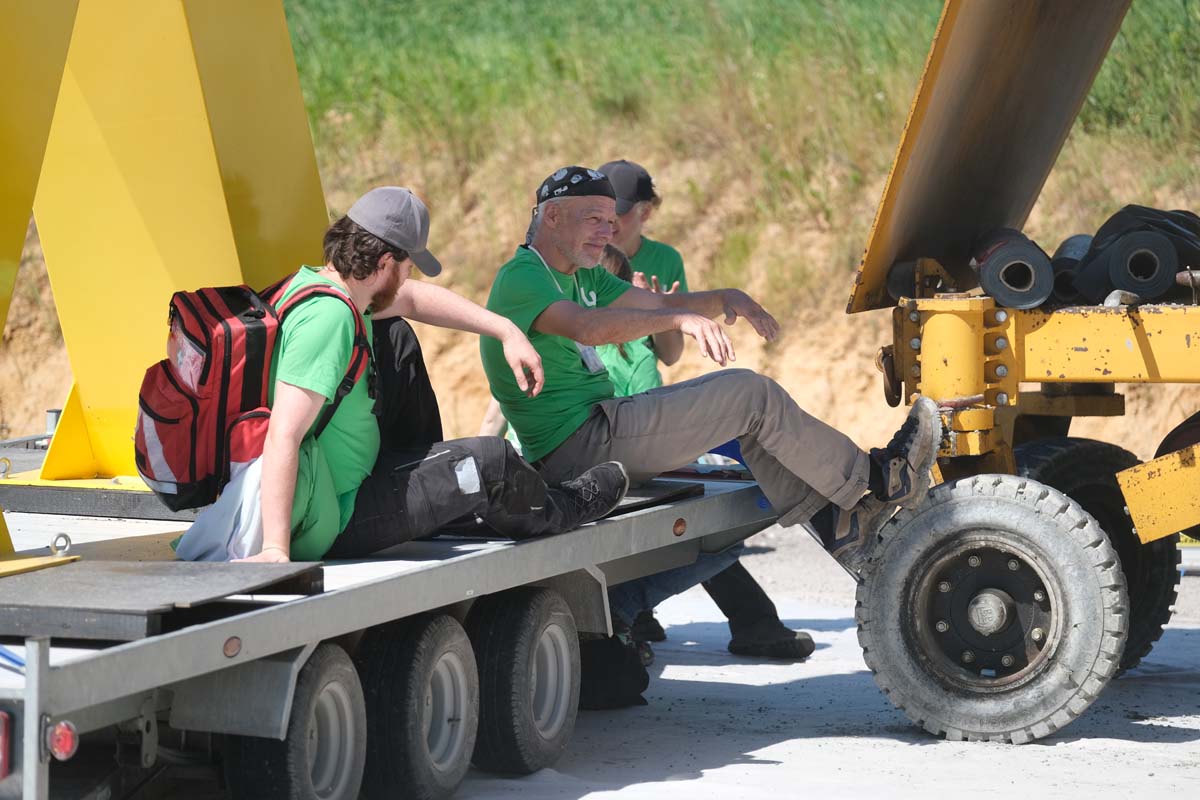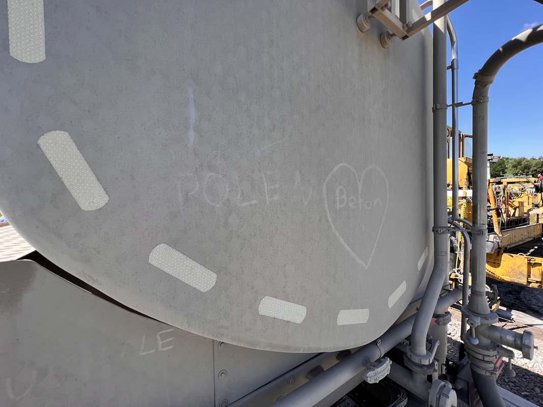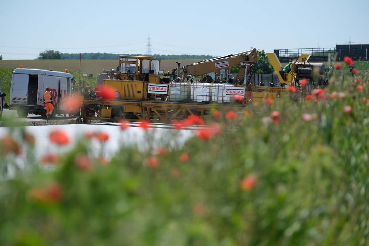Um kurz nach 9 Uhr betätigten Aktivisten den Notausschalter des Betonfertigers, der dann auch sofort stoppte. In diesem Zusammenhang soll es auch zu einer verbalen Auseinandersetzung mit einem Arbeiter gekommen sein, der das Notaus der Maschine nicht so einfach hinnehmen wollte und der den Fertiger wieder in Betrieb setzte, trotz der Demonstranten im Gefahrenbereich.