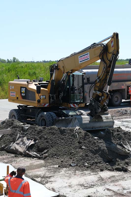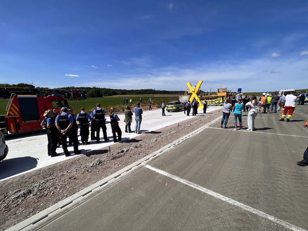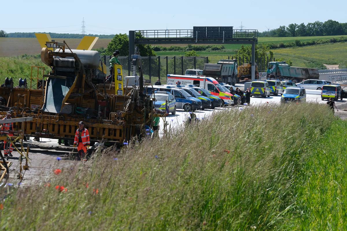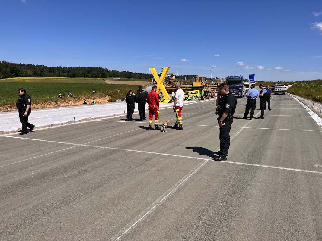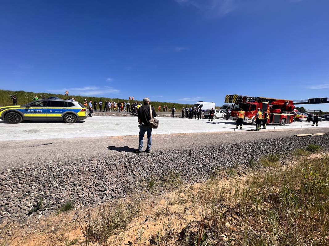 Bis gegen 15:30 Uhr tat sich nicht viel, außer, dass ein Arbeiter mit einem Hochdruckreiniger die Maschine säuberte, um sie vorübergehend stillzulegen und Polizisten sowie Demonstranten auf dem heißen Beton ausharrten. Der zwischen den beiden Teilen des zwölf Meter breiten und mehrere Meter langen Betonfertigers bereits aufgebrachte Beton musste von einem Bagger abgetragen, auf Lkw geladen und letztlich entsorgt werden. Wie eine Demonstrantin sagte, habe man mit der Aktion mehrere Hundert Meter Autobahnbau verzögert.