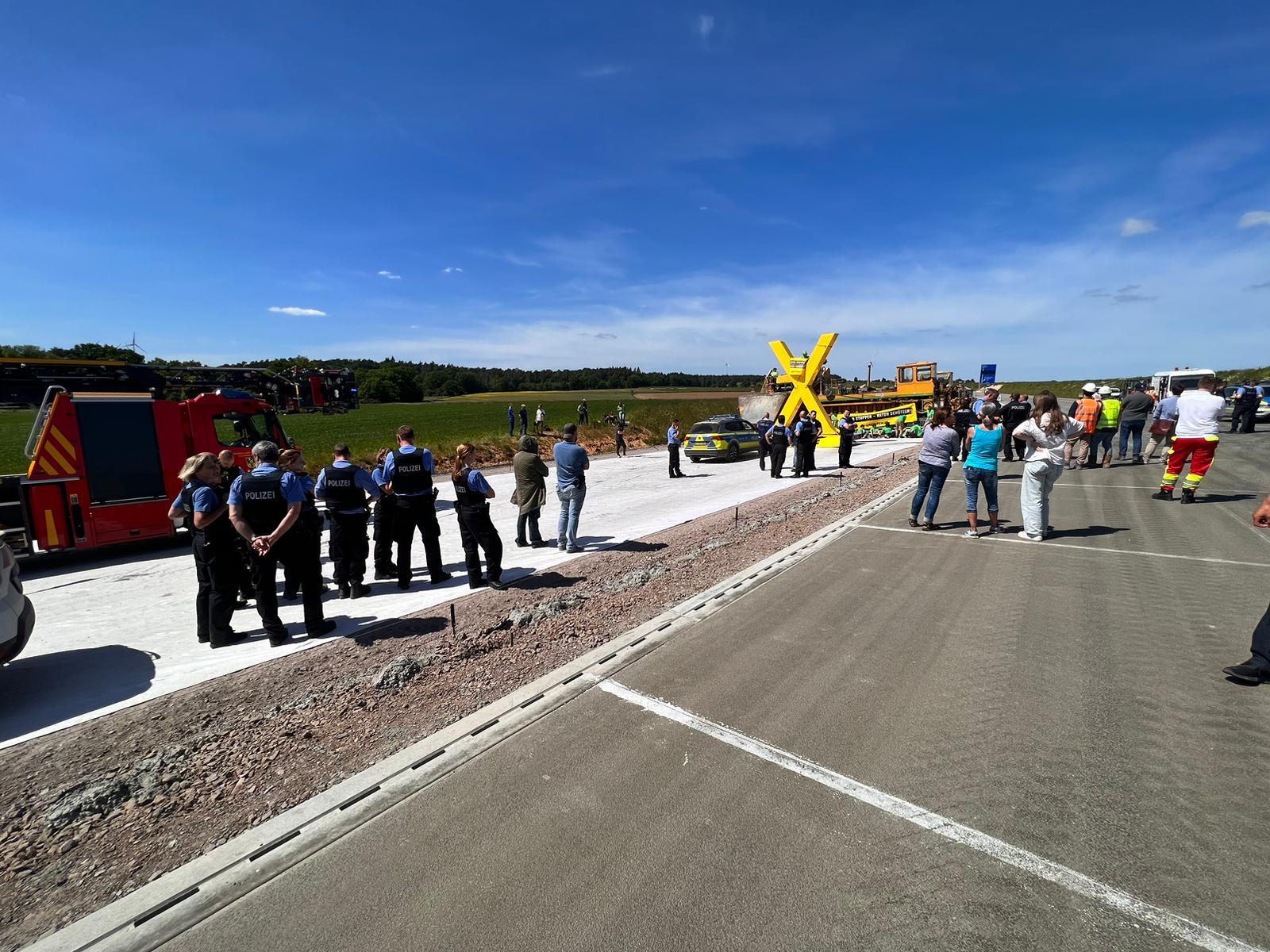 Bis gegen 15:30 Uhr tat sich nicht viel, außer, dass ein Arbeiter mit einem Hochdruckreiniger die Maschine säuberte, um sie vorübergehend stillzulegen und Polizisten sowie Demonstranten auf dem heißen Beton ausharrten. Der zwischen den beiden Teilen des zwölf Meter breiten und mehrere Meter langen Betonfertigers bereits aufgebrachte Beton musste von einem Bagger abgetragen, auf Lkw geladen und letztlich entsorgt werden. Wie eine Demonstrantin sagte, habe man mit der Aktion mehrere Hundert Meter Autobahnbau verzögert.