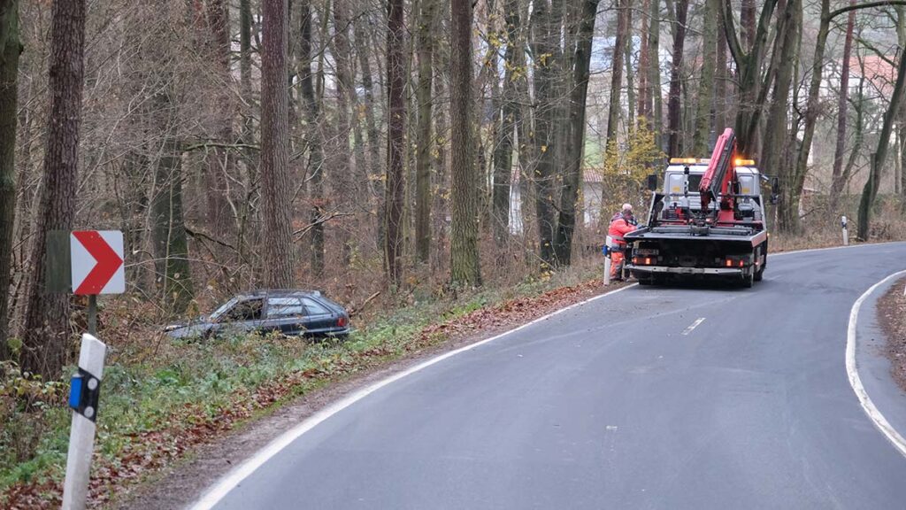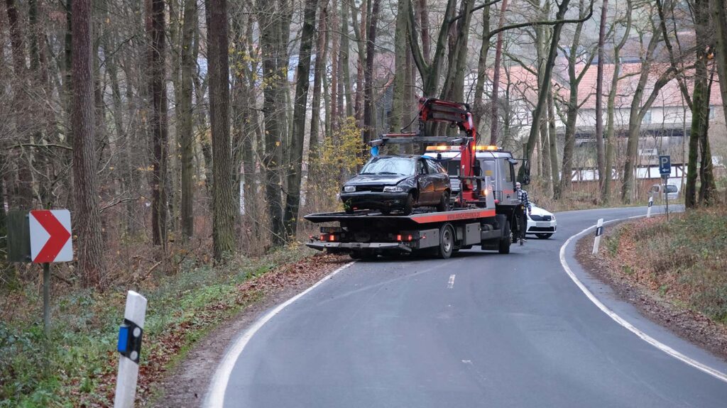 Gegen 11 Uhr fuhr eine 62-Jährige aus Neustadt von Treysa kommend in Richtung Florshain. In der scharfen Linkskurve vor dem Ort verlor sie die Kontrolle über den Pkw und geriet nach links von der Fahrbahn ab. Das Auto rutschte einen Abhang hinunter, überschlug sich und kam schließlich auf den Rädern an einem Baum zum Stillstand.