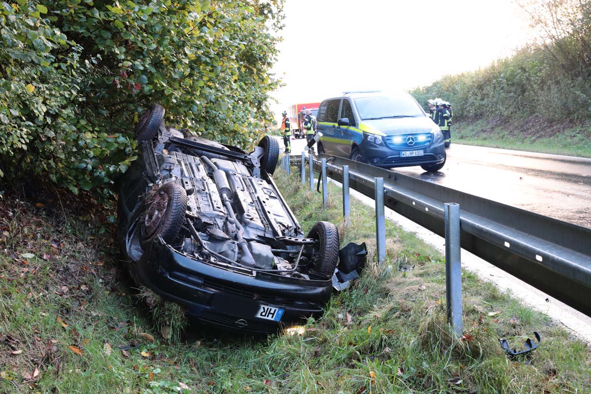 Der Mann war gegen 17 Uhr auf der L3145 von Schwalmstadt-Treysa kommend in Richtung Dittershausen unterwegs. Kurz hinter dem Abzweig nach Rommershausen geriet er innerhalb eines kurvigen Streckenabschnitts mit seinem Pkw nach rechts von der Fahrbahn ab. Am Beginn der dortigen Leitplanke fuhr er auf diese auf, wodurch sich der Pkw überschlug und dann rechts der Fahrbahn auf dem Dach liegend zum Stillstand kam.