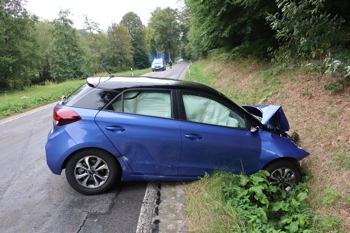 Wohl etwas flotter war die 57-Jährige aus Schrecksbach zur Unfallzeit in Richtung Schlierbach unterwegs. Sie überholte einen Pkw und wollte dann noch einen weiteren Pkw und einen Traktor mit Anhänger überholen. Den Toyota eines Mannes (33) aus Neukirchen berührte sie leicht, wodurch sie die Kontrolle über ihren Hyundai i20 verlor. In der Folge kollidierte die 57-Jährige mit dem hinteren rechten Rad des Traktors, wurde von dort nach links abgewiesen und prallte frontal in die Böschung.