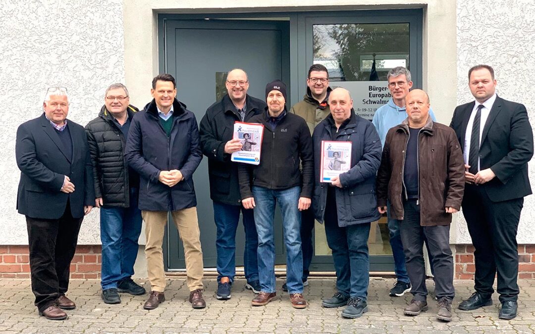 Das Bild: Karsten Schenk, Reinhard Otto, Dr. Constantin Schmitt, Christian Herche, Michael Knoche, Georg Stehl, Gerhard Reidt, Bgm. Tobias Kreuter, Armin Happel, Engin Eroglu