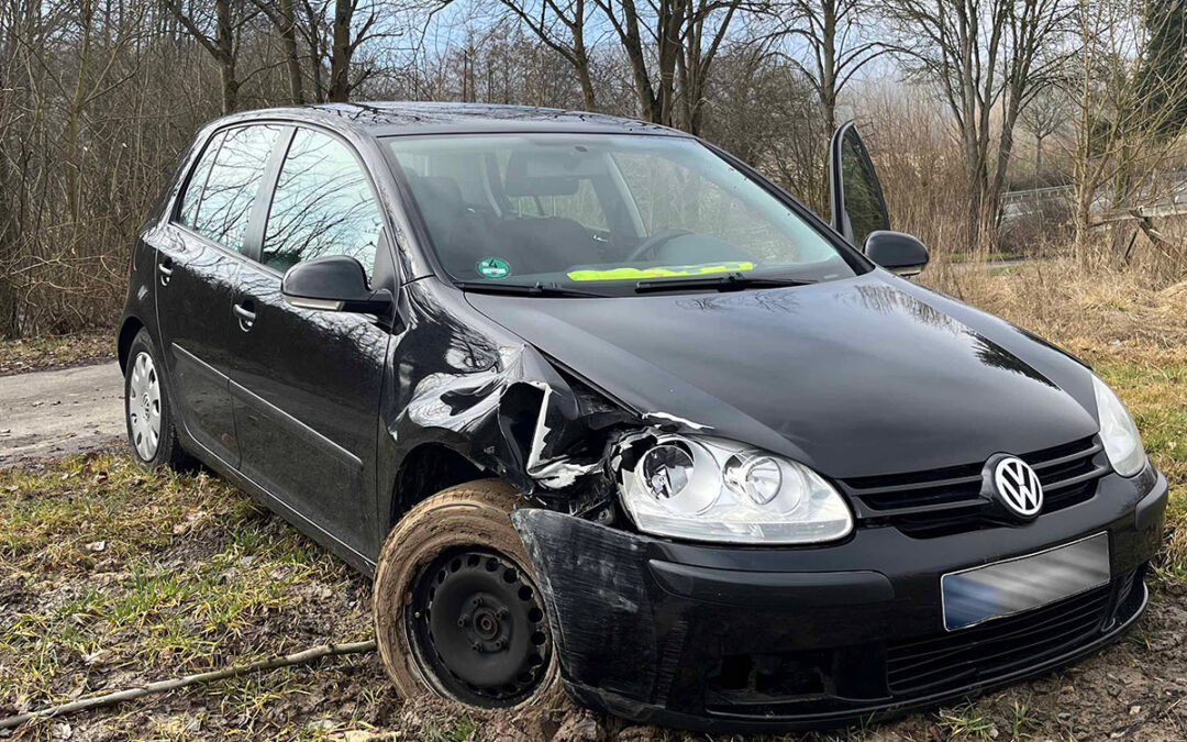 Das Fahrzeug war offenbar von einem Feldweg abgekommen und im Matsch steckengeblieben. Es wies einen frischen Unfallschaden auf, doch eine passende Unfallstelle wurde nicht gefunden.