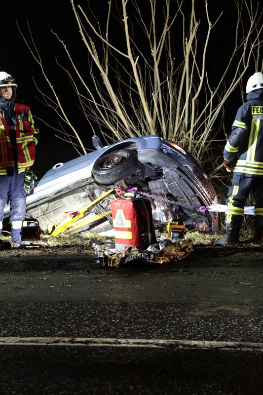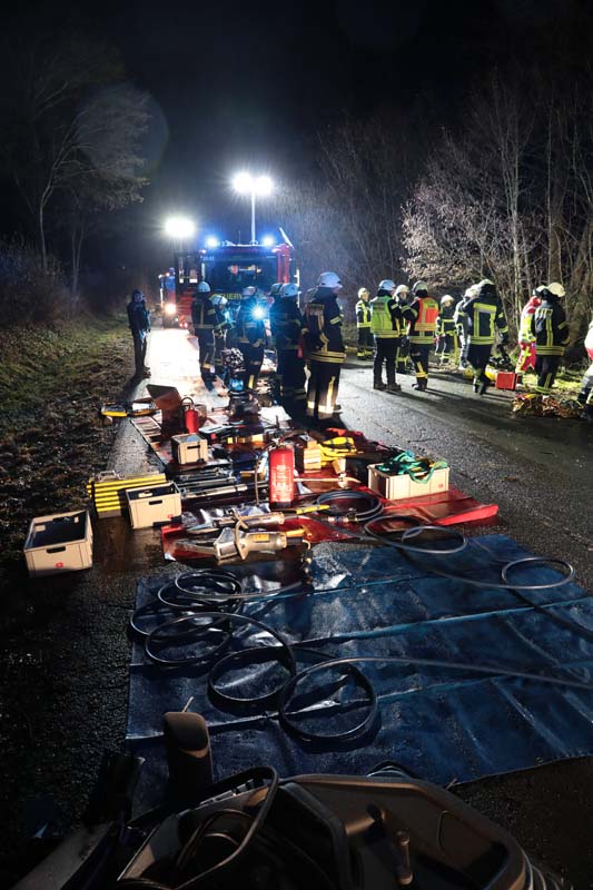Die Schwerverletzte wurde im Pkw von einem Mitarbeiter des Rettungsdienstes und einem Notarzt stabilisiert und anschließend von Feuerwehrleuten mit hydraulischem Gerät befreit. Mithilfe eines Spinboards erfolgte die schonende Bergung aus dem Pkw, und im Rettungswagen wurde die Patientin auf ihren Transport in eine Klinik vorbereitet. Aufgrund der Witterungsverhältnisse flogen Rettungshubschrauber nicht, sodass die Patientin bodengebunden in ein Krankenhaus der Umgebung gebracht werden musste.