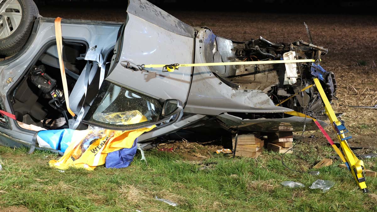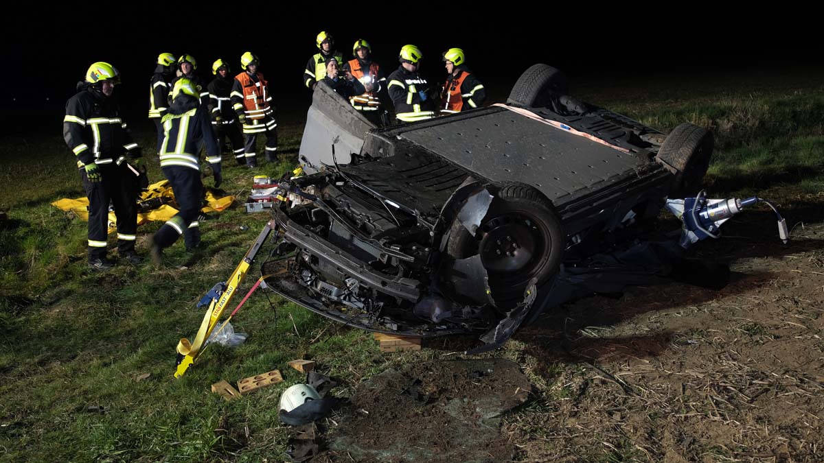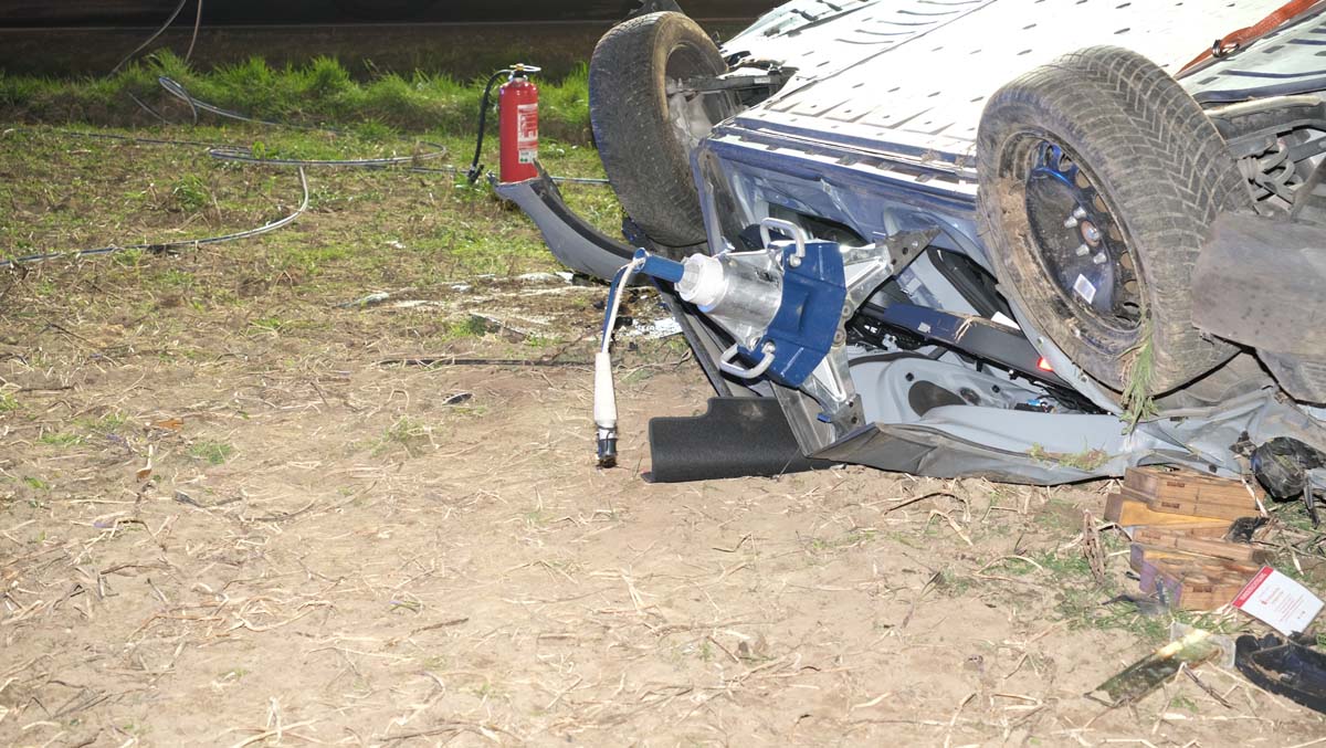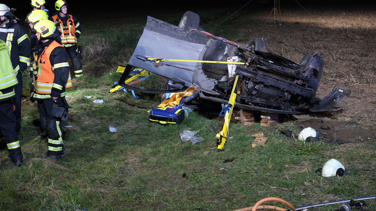 Die eingehenden Meldungen über den Unfall waren zunächst so widersprüchlich, dass angenommen wurde, es befände sich niemand mehr in dem Auto. Wie sich jedoch kurz später herausstellte, konnten sich die beiden 19-jährigen Mitfahrer mithilfe von Ersthelfern aus dem Unfallwrack befreien. Die ersten Rettungskräfte fanden das auf dem Dach liegende Fahrzeug vor, in dem sich noch der schwer verletzte 20-jährige Fahrer befand.