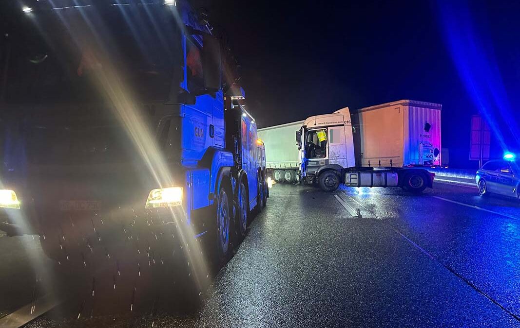 Das Fahrzeug kam mutmaßlich aufgrund nicht angepasster Geschwindigkeit ins Schleudern, geriet nach rechts von der Fahrbahn ab und prallte gegen die Schutzplanke. Dabei verkeilte sich die Zugmaschine mit dem Auflieger und blockierte sämtliche Fahrspuren in Richtung Kassel. Der Fahrer blieb unverletzt. Die Polizei schätzte den Sachschaden auf einen mittleren fünfstelligen Betrag. Die Bergung des havarierten Sattelzugs übernahm das Unternehmen Gün. Gegen 8 Uhr wurde die Fahrbahn wieder freigegeben, doch der sieben Kilometer lange Stau löste sich erst gegen 10 Uhr auf, informiert Ulrike Schaake vom Polizeipräsidium Nordhessen in Kassel.