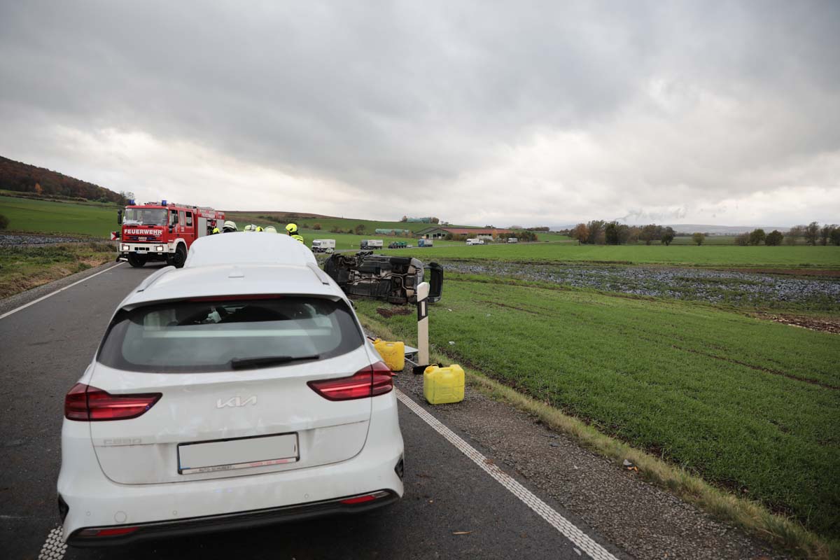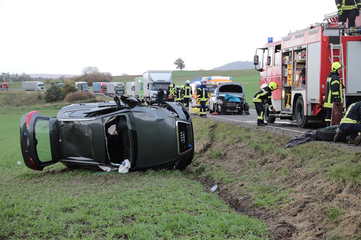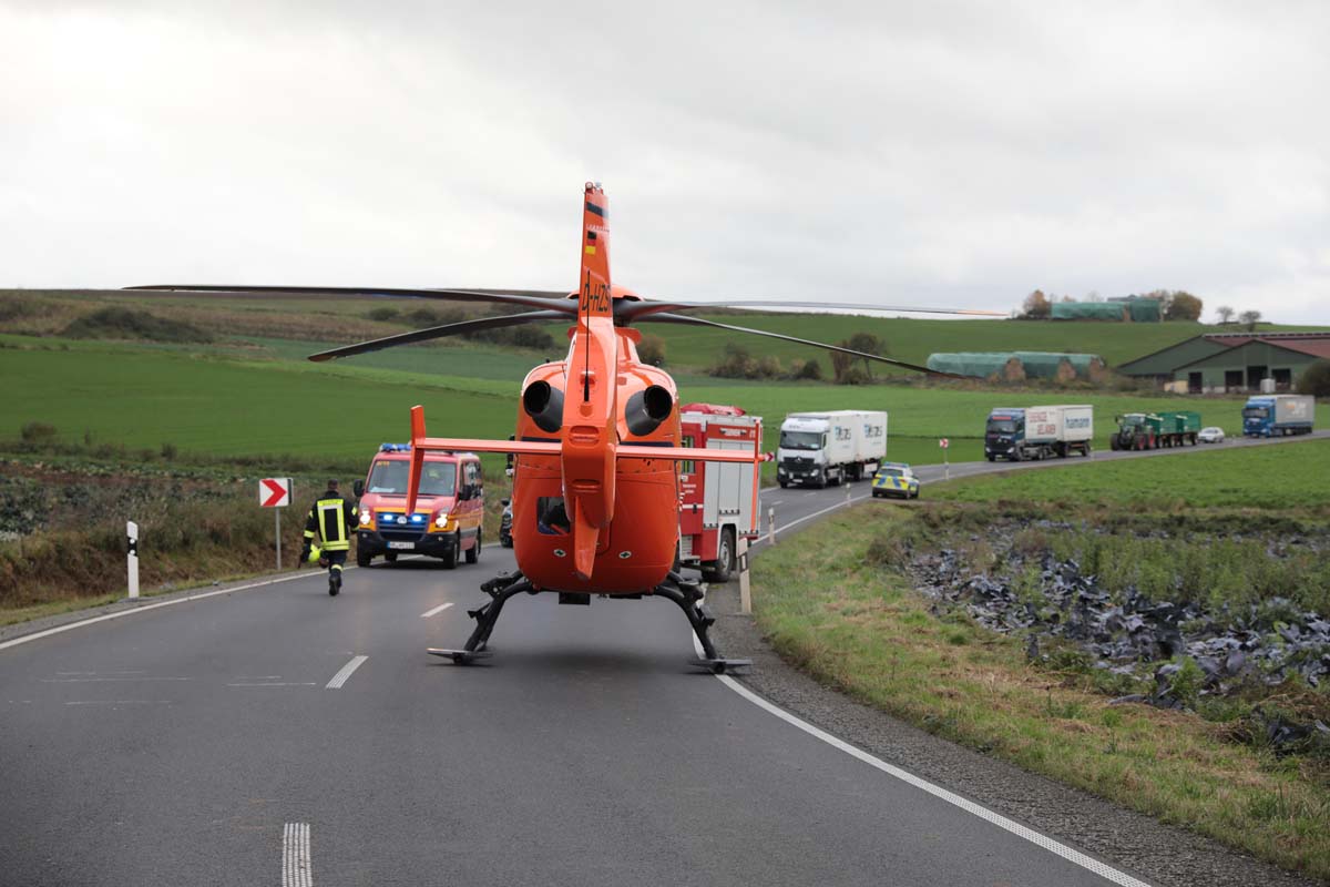 Der zweite Pkw, ein weißer Kia, kam auf der Straße zum Stillstand. Die 36 Jahre alte Fahrerin erlitt leichte Verletzungen. Rettungsteams und Notarztteams des Malteser-Hilfsdienstes und des DRK versorgten die Verletzten, zu deren Versorgung auch die Crew des Rettungshubschraubers Christoph 7 aus Kassel vor Ort war. Die Crew des Rettungshubschraubers flog die 58-Jährige nach ihrer medizinischen Erstversorgung an der Unfallstelle dann auch in eine Klinik.
