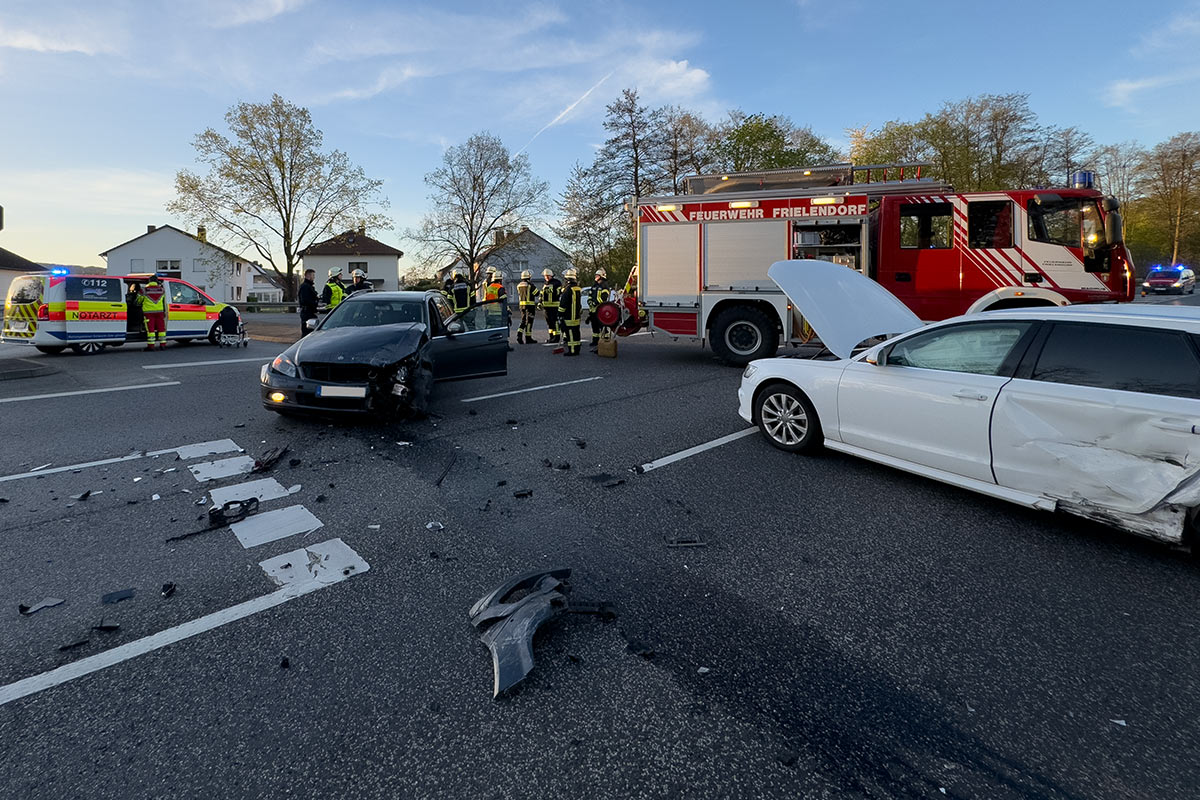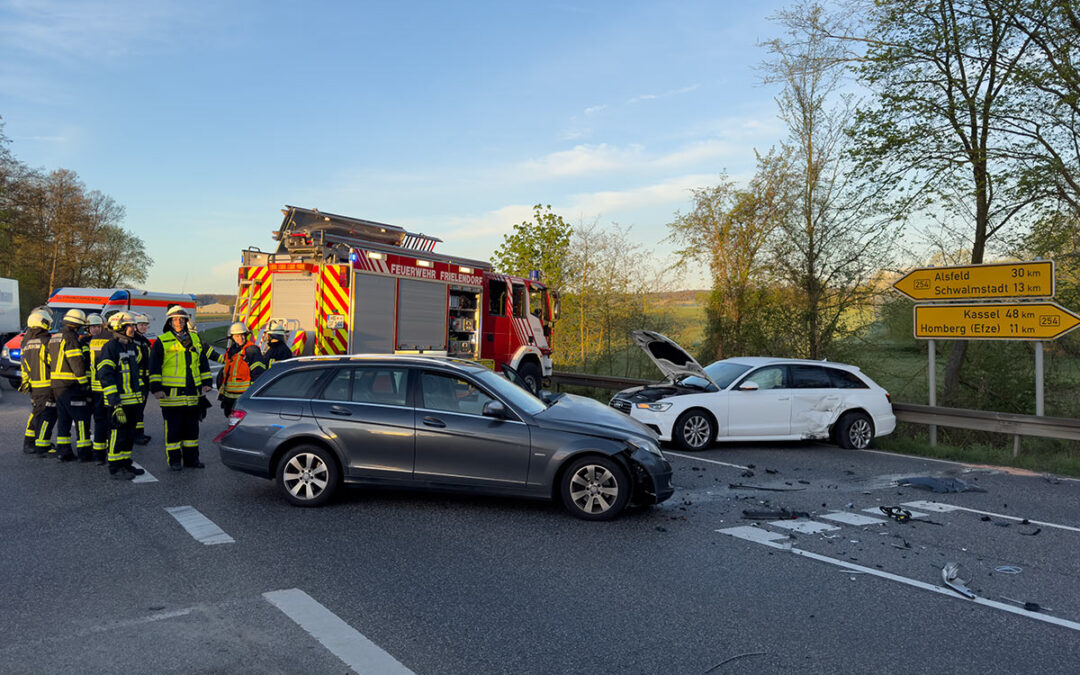 Der Verkehrsunfall in Höhe der Zufahrt der B 254 nach Frielendorf Süd“/Ziegenhainer Straße (Penny) ereignete sich um kurz vor 7 Uhr. Eine 28 Jahre alte Mercedesfahrerin übersah den Audi einer 39 Jahre alten Frau. Die Fahrzeuge prallten im Kreuzungsbereich heftig zusammen, wodurch die beiden Frauen Verletzungen erlitten, die möglicherweise schwer aber keinesfalls lebensbedrohlich sind. Rettungsteams brachten sie nach ihrer Erstversorgung, an der auch eine Notärztin beteiligt war, in ein nahes Krankenhaus.
