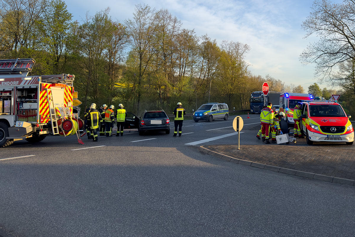 Die Bundesstraße war während der Rettungs-, Aufräumungs- und Bergungsmaßnahmen voll gesperrt. An dem Mercedes war augenscheinlich wirtschaftlicher Totalschaden entstanden. Der erhebliche Seitenschaden an dem Audi konnte vor Ort nicht geschätzt werden.