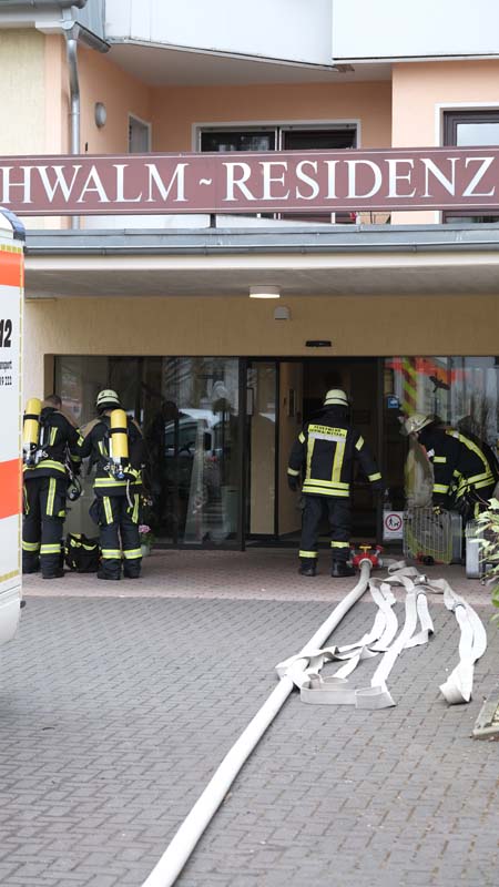 Die Bewohnerin des Zimmers im Obergeschoss atmete Rauchgase ein. Ein DRK-Rettungsteam hatte die Dame vor Ort untersucht und festgestellt, dass ein Transport in ein Krankenhaus nicht notwendig war. Feuerwehr, Rettungsdienst und Polizei wurden um kurz nach 13 Uhr alarmiert. Ein Trupp unter Atemschutz war in der Wohnung, musste aber nichts löschen. Dennoch hatten die Feuerwehrleute flott eine Wasserversorgung aufgebaut und einen zweiten Atemschutztrupp in Bereitschaft gestellt. Letztlich musste die betroffene Wohnung aber nur noch belüftet werden.
