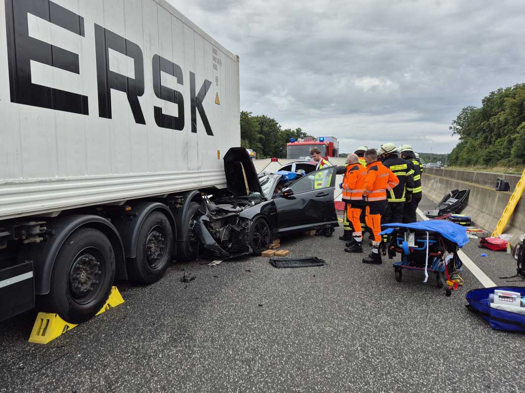 Verkehrsunfall auf der A 7: Vier Verletzte, eine davon schwer