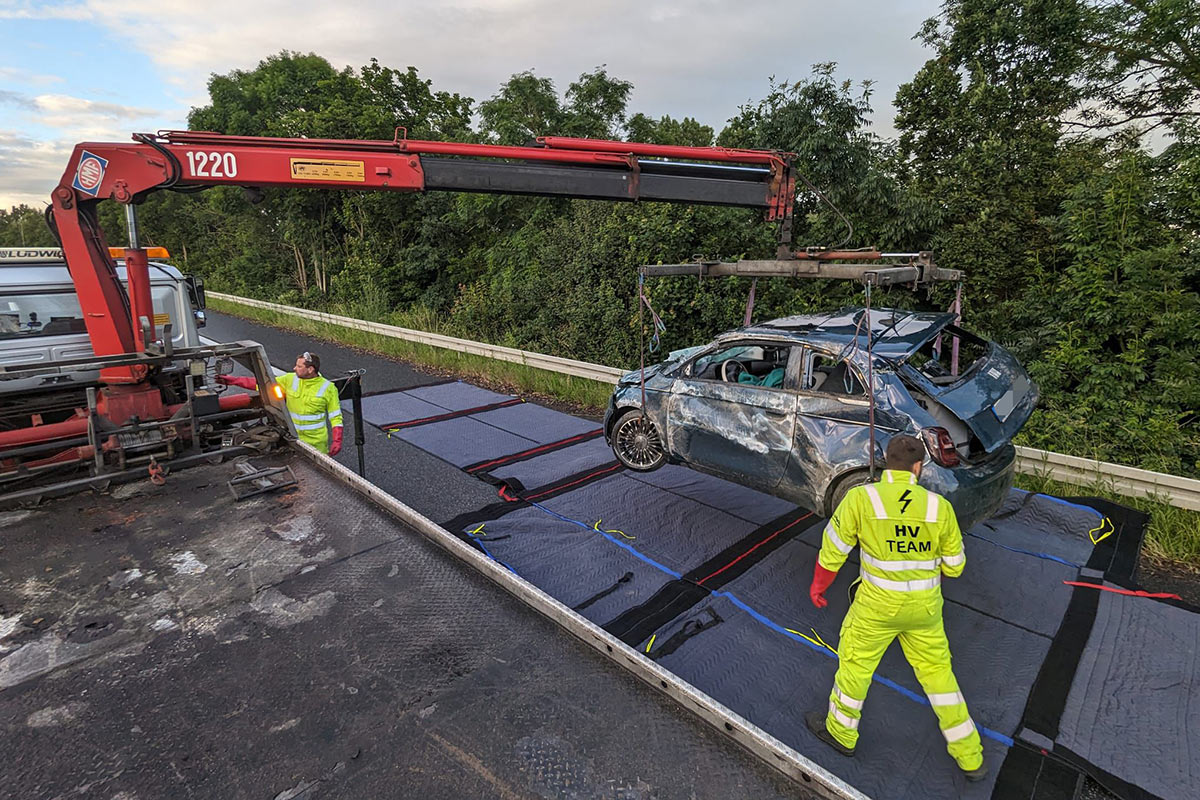 WABERN. Feuerwehrleute befreiten am Montagabend eine 55 Jahre alte Frau aus ihrem vollkommen zerstörten Fiat 500, der sich bei einem Unfall auf der Autobahn 49 nahe der Anschlussstelle Wabern mehrfach überschlagen hatte.
