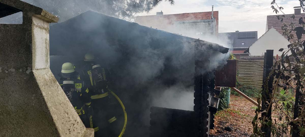 BORKEN-GROßENENGLIS. Am Montagmorgen brannte in der Straße „Am Brückchen“ in Borken-Großenenglis ein Gartenhaus. Zwei Feuerwehrtrupps unter Atemschutz konnten das Gebäude, das bei ihrem Eintreffen bereits in Flammen stand, mit Wasser aus zwei C-Rohren löschen.