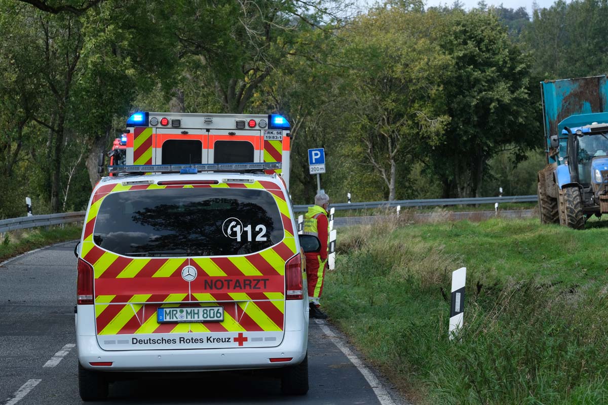 Schwarzenbörner Feuerwehrleute sperrten während der Rettungsmaßnahmen die Fahrbahn in beide Richtungen, womit sie den Hilfskräften ein gefahrloses Arbeiten ermöglichten. Die Einsatzleitung der Feuerwehr hatte André Dickhaut, Schwarzenborns Stadtbrandinsepktor. Neben den medizinischen Rettungskräften waren insgesamt 20 Feuerwehrleute aus Neukirchen und Schwarzenborn sowie eine Streifenwagenbesatzung der Polizeistation Homberg vor Ort. An dem Pkw entstand wirtschaftlicher Totalschaden.