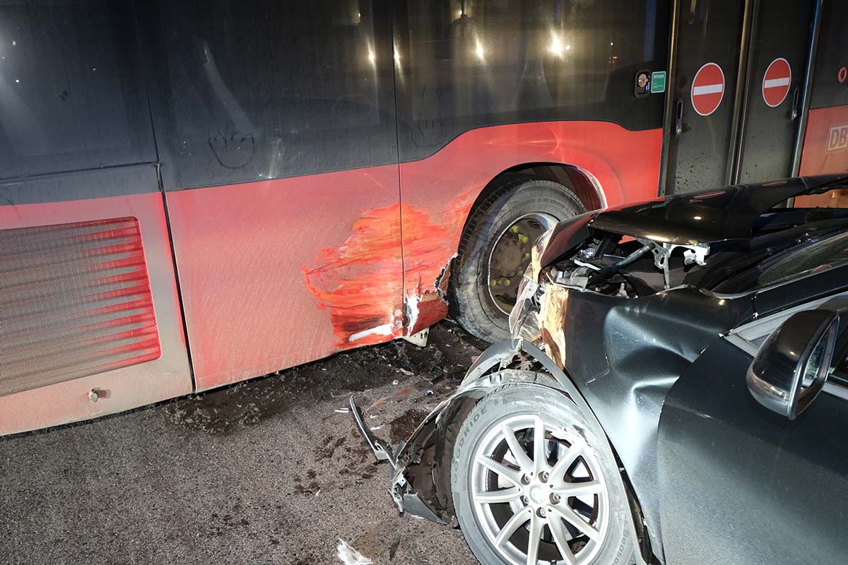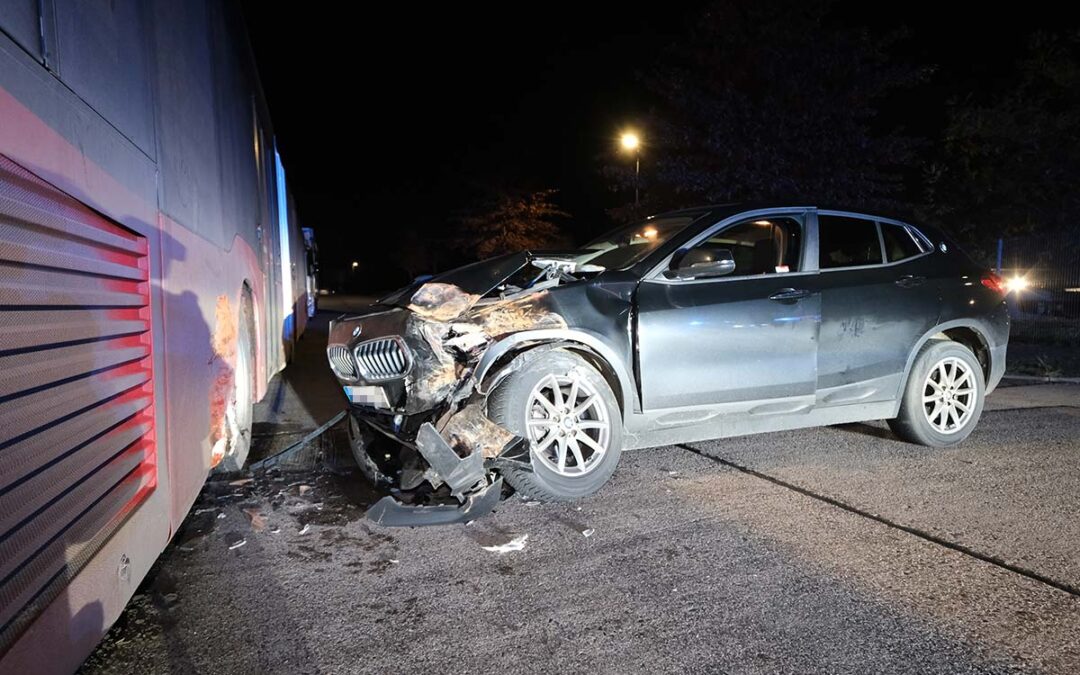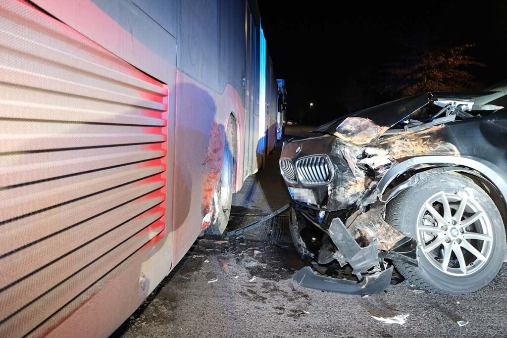 Nach Angaben der Polizei fuhr der Mann gegen 20 Uhr mit sehr hoher Geschwindigkeit in einem BMW X2 über die Gottlieb-Daimler-Straße in Richtung Adam-Opel-Straße. Dort prallte er frontal gegen einen am Straßenrand abgestellten Bus der Deutschen Bahn AG. Der Schaden am Bus beträgt rund 25.000 EUR, der am BMW des jungen Fahrers etwa 30.000 EUR.