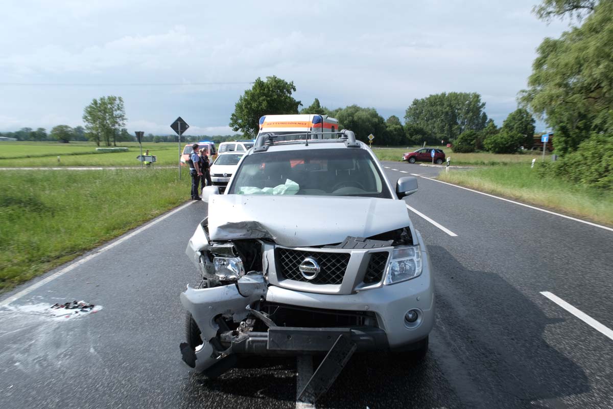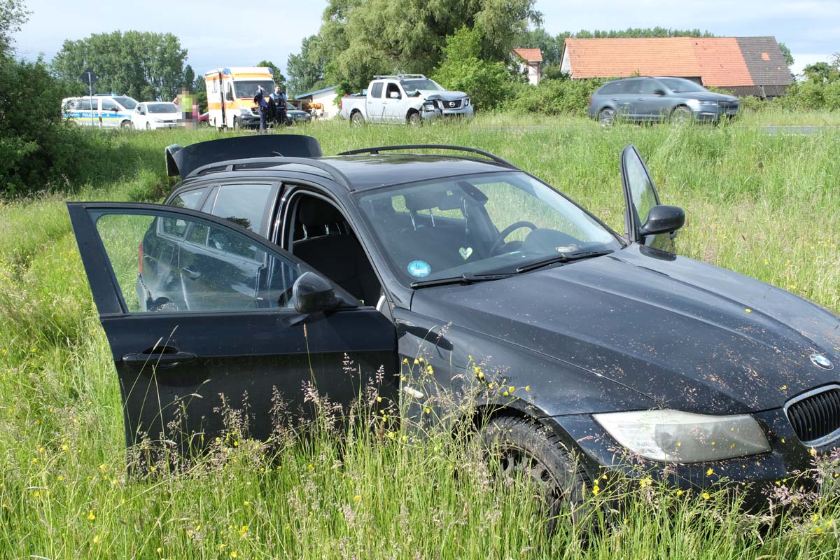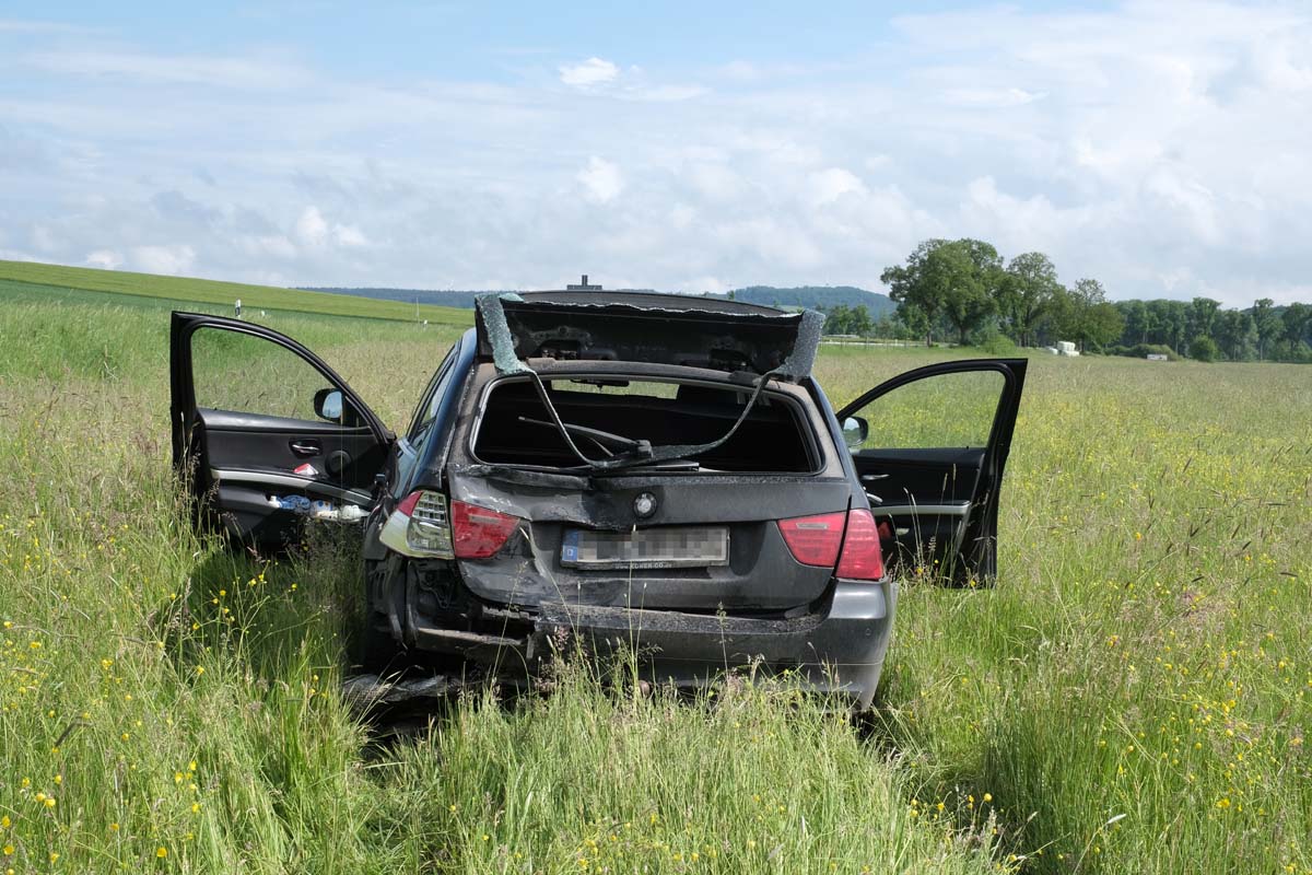 Zur Unfallzeit, gegen 16 Uhr, blinkte und stoppte ein Lkw-Fahrer kurz hinter dem Abzweig nach Zella in Richtung Alsfeld seinen Sattelzug, um nach links auf einen Feldweg abzubiegen. Dies erkannte der Fahrer eines 5er-BMW (46) und hielt hinter dem Sattelzug an. Die stehen Fahrzeuge übersah der folgende Fahrer (59) eines Nissan Pick-up und fuhr wahrscheinlich ungebremst auf das Heck des stehen BMW auf. Durch die Wucht des Aufpralls wurde der BMW zunächst gegen den Sattelauflieger und im weiteren Verlauf auf eine Wiese katapultiert.