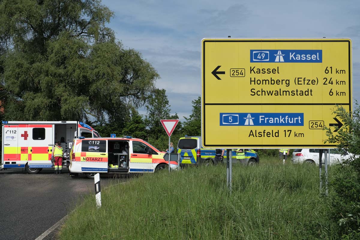 Vor Ort waren zwei DRK-Rettungsteams, ein Notarztteam und eine Streifenwagenbesatzung der Polizeistation Schwalmstadt. Zu Verkehrsbeeinträchtigungen kam es nicht.