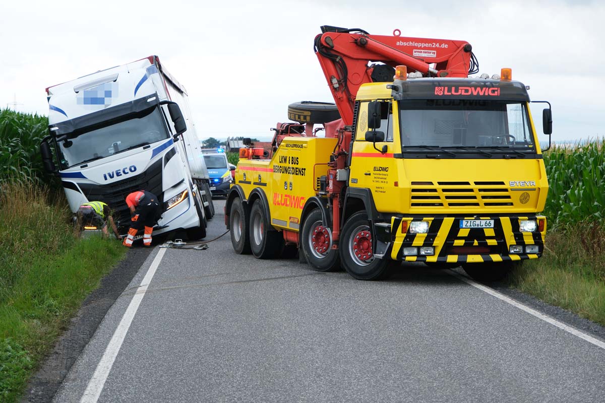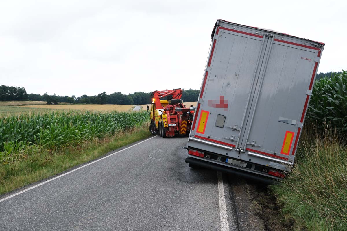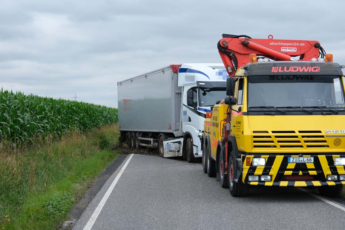 Auf der Kreisstraße zwischen den Frielendorfer Ortsteilen Obergrenzebach und Großropperhausen begegneten sich zwei Lkw. Der in Richtung Großropperhausen fahrende Sattelzugfahrer wich dem entgegenkommenden Lkw nach rechts aus, fuhr dabei mit niedriger Geschwindigkeit auf die unbefestigte Bankette und sackte samt des Aufliegers ab. Das von der Spedition beauftragte Unternehmen Ludwig aus Schwalmstadt konnte den mit Streusalz voll beladenen Sattelzug mithilfe eines Berge-Lkw aus dem Straßengraben auf die K 124 ziehen. Während des Bergungseinsatzes war die Kreisstraße mithilfe einer Streifenwagenbesatzung der Polizeistation Schwalmstadt voll gesperrt. Zu nennenswerten Verkehrsbehinderungen kam es nicht.