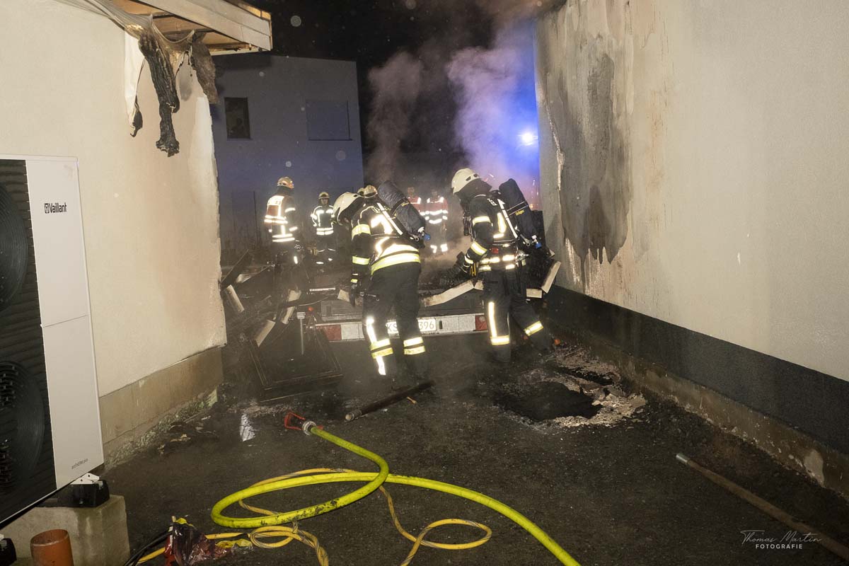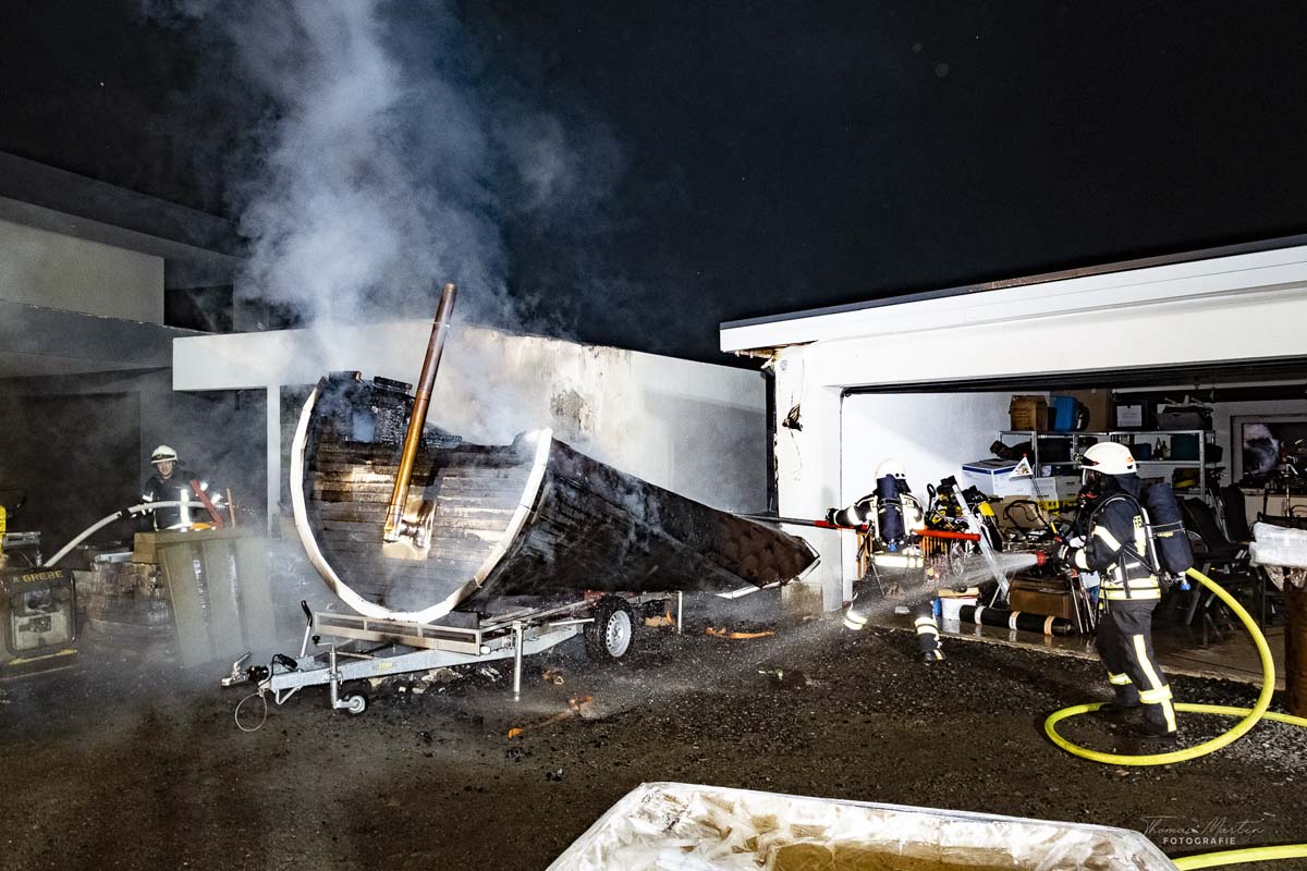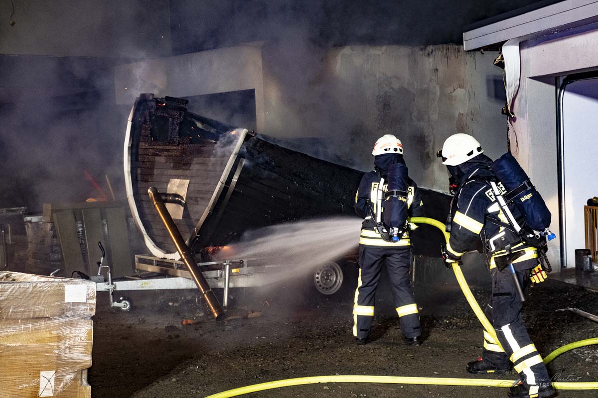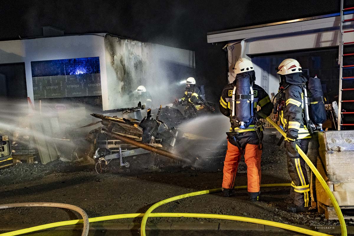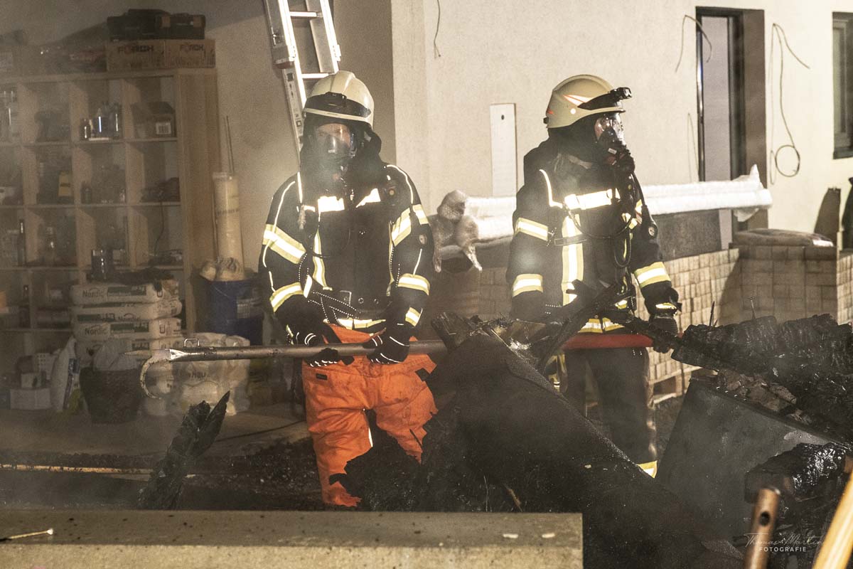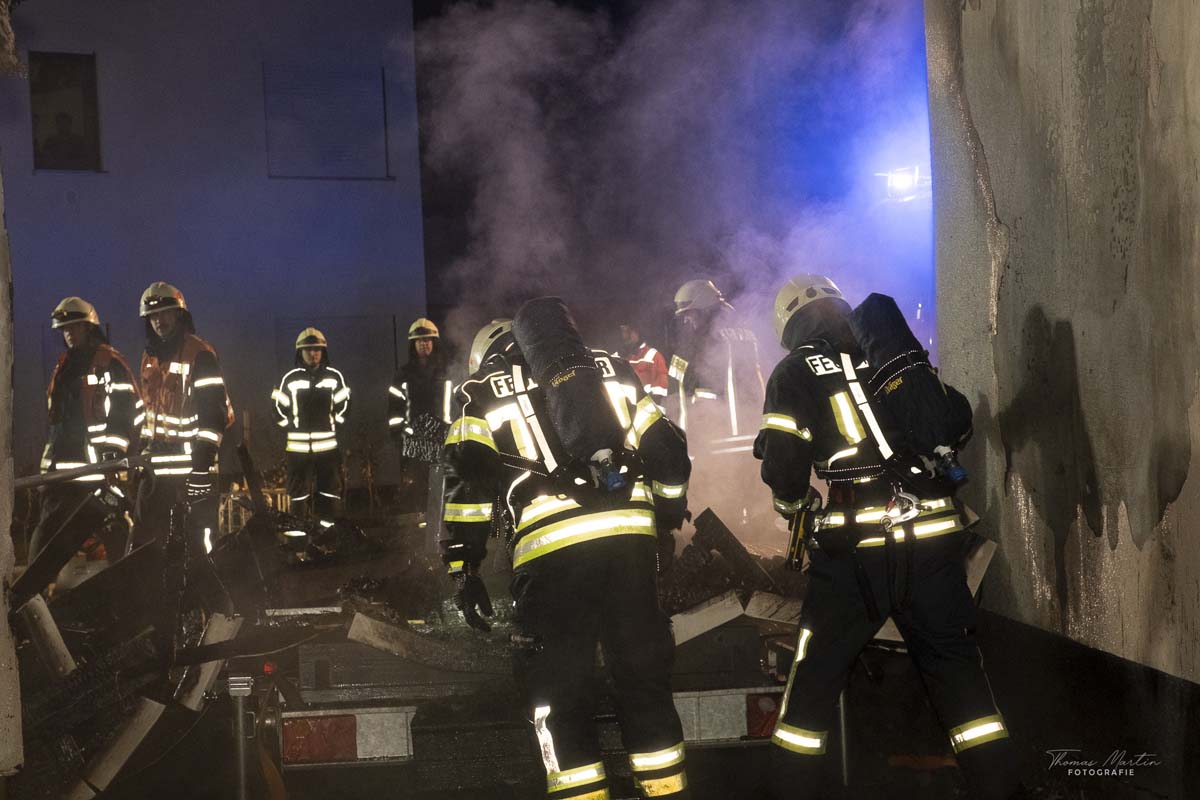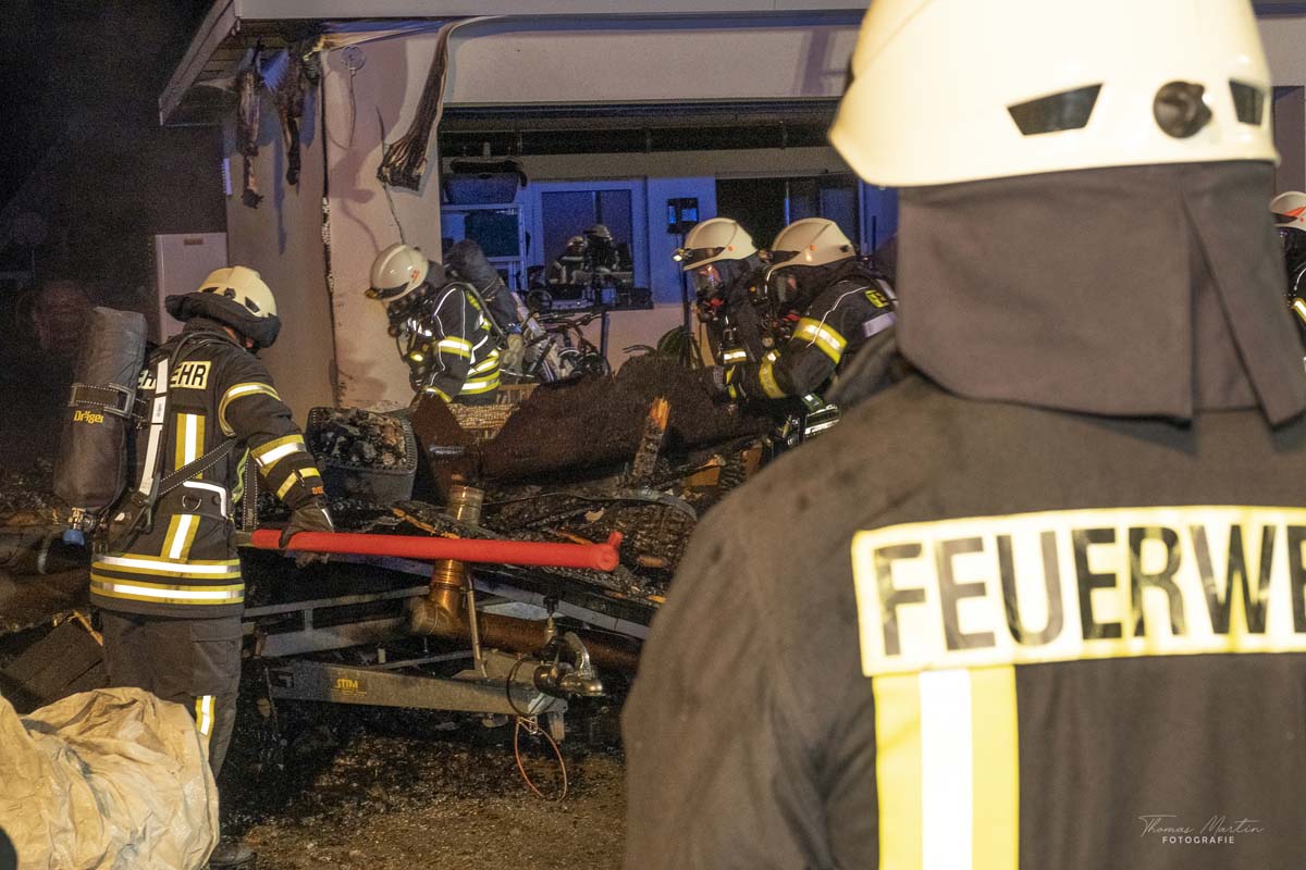 WICHDORF. In Niedenstein-Wichdorf brannte am frühen Samstagmorgen eine mobile Sauna, die auf dem Gelände eines privaten Grundstücks stand und am Freitagabend in Betrieb war. Eine Zeugin bemerkte den Brand und alarmierte die Feuerwehr. Durch die Flammen der brennenden Sauna wurde auch eine Garage in Mitleidenschaft gezogen. Der Sachschaden liegt nach einer ersten Schätzung der Polizei bei rund 15.000 EUR. Die Ermittlungen zur Brandursache dauern an. Wie Thomas Martin von der Feuerwehr berichtet, erfordert der Brand mehrere Atemschutztrupps. Das benötigte Wasser kam zunächst aus den Tanks der Löschfahrzeuge, anschließend aus Hydranten. Die Reste der Sauna mussten mit Einreißhaken auseinander gezogen. Der Brandschutt konnte dann mit einer Wärmebildkamera auf Brandnester kontrolliert und abgelöscht werden. Zudem kontrollierten Feuerwehrleute die angrenzenden Gebäude, um einen Branddurchschlag auszuschließen. Der Einsatz wurde von Stadtbrandinspektor Jan Hohmann geleitet. Im Einsatz waren die Feuerwehren Niedenstein+Wichdorf mit 35 Frauen und Männern, ein Rettungsteam der Malteser aus Gudensberg sowie eine Streifenwagenbesatzung der Polizeistation Fritzlar. (wal)