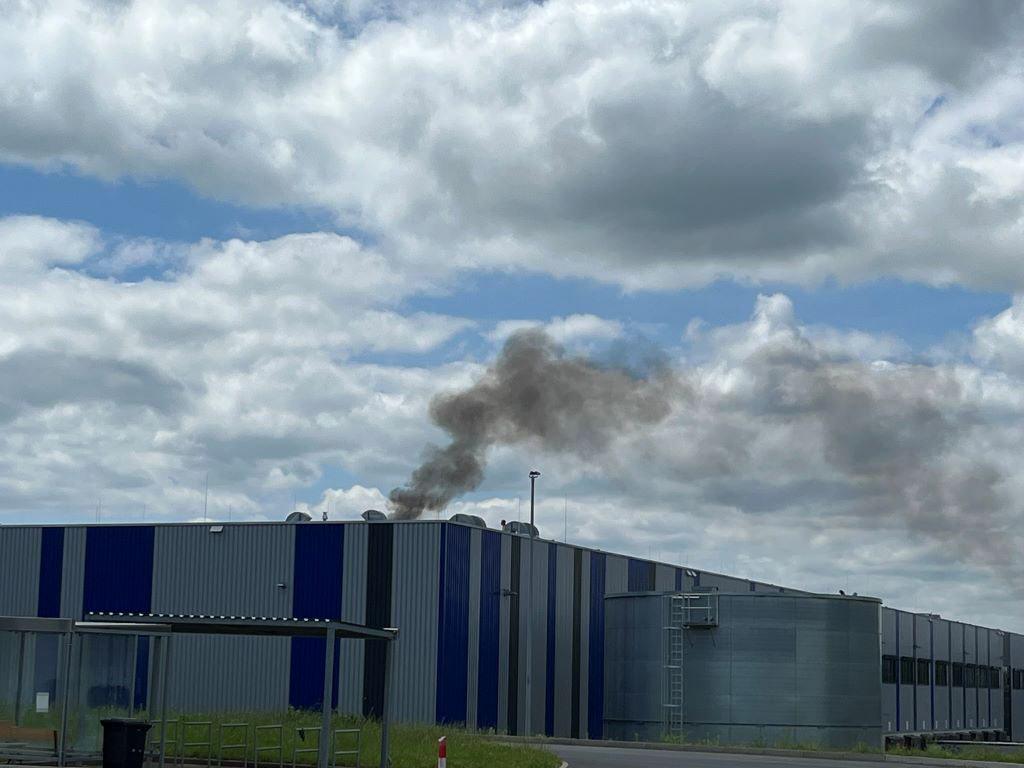Brand auf Dach von Logistikhalle