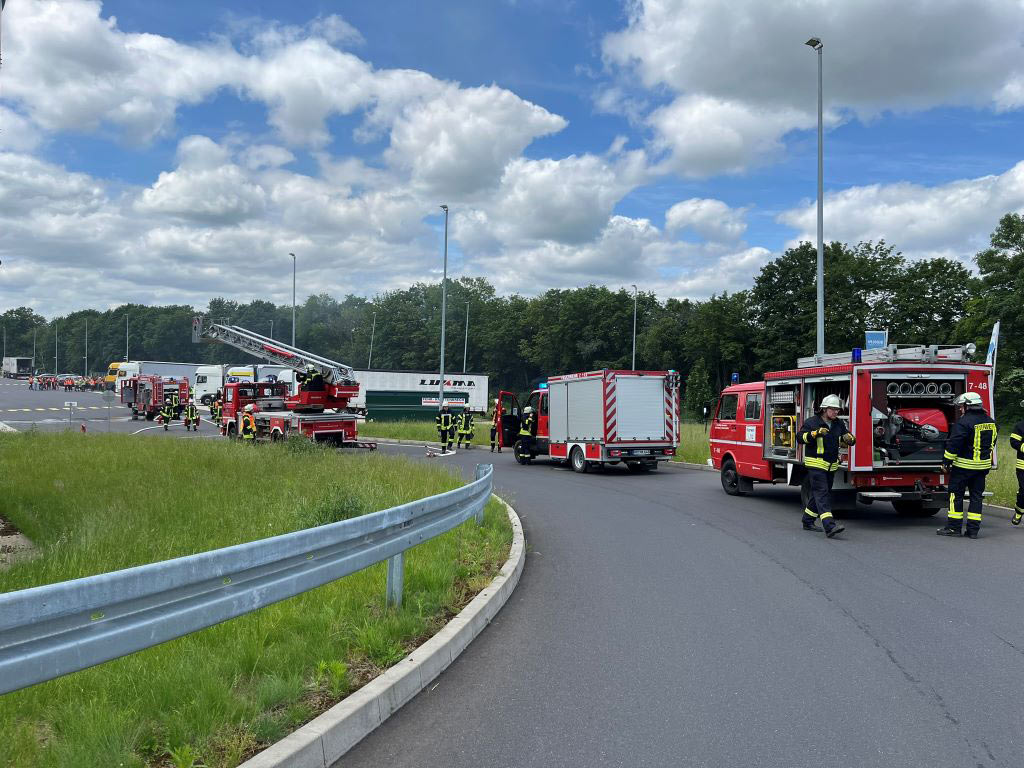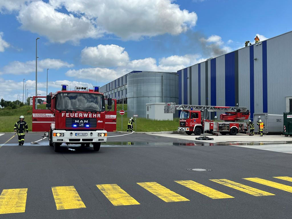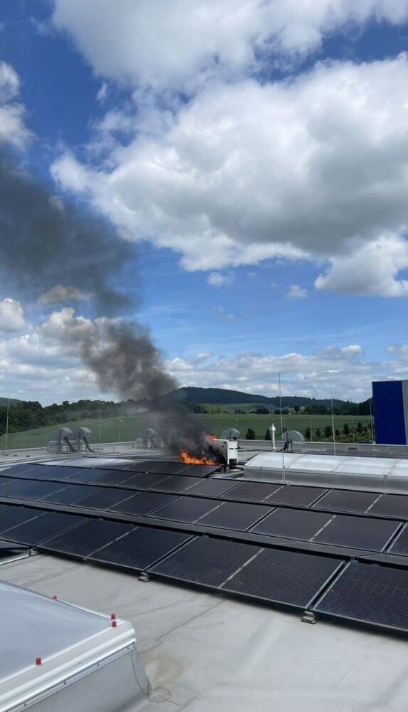 GUDENSBERG. Am Mittag kam es zu einem Brand auf einer Halle eines Logistikunternehmens in Gudensberg. Da zunächst ein Feuer innerhalb der Halle angenommen worden war, wurde Großalarm für Feuerwehr und Rettungskräfte ausgelöst. Am Dienstagmittag bemerkten Autofahrer Qualmwolken auf dem Dach einer Halle des Logistikbetriebs. Momente später löste die Brandmeldeanlage der Halle aus. Ursache war der Brand eines Wechselrichters auf der Lagerhalle. Bei Eintreffen der Feuerwehr waren Flammen und Rauchentwicklung auf dem Dach sichtbar. Die erste Maßnahme der Feuerwehr war ein Löschangriff über die Rettungsaußentreppe mit CO₂-Löschern. Weitere Maßnahmen zur Brandbekämpfung wurden über die Drehleiter vorbereitet. Das Feuer konnte mittels der CO₂-Löscher schnell unter Kontrolle gebracht werden. Mithilfe einer herbeigerufenen Fachfirma wurde der Wechselrichter vom Netz genommen. Da die Temperatur in der Dachhaut noch 500 Grad betrug, wurde dieser Bereich mit Wasser gekühlt. „Diese Maßnahme zeigte schnellen Erfolg, sodass der Einsatz nach gut 2,5 Stunden beendet werden konnte“, informiert Yvonne Völske von der Feuerwehr Gudensberg. Wie ein Polizeisprecher in Homberg berichtet, wurde niemand verletzt und es entstand zudem kein Schaden am Gebäude. (wal)