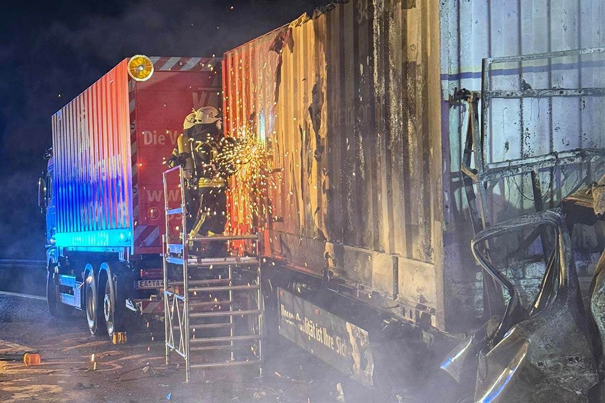 Unmittelbar nach dem Aufprall geriet der Transporter in Brand und brannte vollständig aus. Der Fahrer konnte sich nicht mehr aus dem Wrack befreien. Die Feuerwehr Guxhagen war schnell zur Stelle, konnte den Fahrer aber nicht mehr aus dem in Vollbrand stehenden Fahrzeug retten, er verstarb noch an der Unfallstelle, so Robin Stephan von der Feuerwehr Guxhagen. Nach den Löscharbeiten wurde der Leichnam von den Freiwilligen aus dem Wrack geborgen.