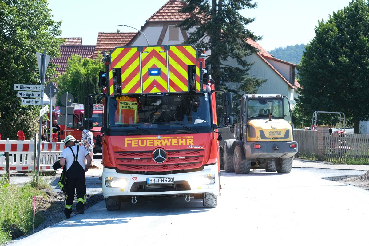 NEUKIRCHEN-RIEBELSDORF. Im aktuellen Bauabschnitt der Alsfelder Straße in Neukirchen-Riebelsdorf hat sich am Dienstagvormittag ein Lkw-Fahrer den Tank seines auf Flüssiggas umgerüsteten Lkw aufgerissen. Der Unfall zog einen größeren Einsatz von Feuerwehrleuten aus Neukirchen, der benachbarten Feuerwehren aus Schrecksbach, Willingshausen und Schwalmstadt sowie speziell geschulten Feuerwehrleuten des Gefahrstoffzugs unter anderem aus Melsungen und Guxhagen nach sich. Anwohner wurden gebeten, Fenster und Türen geschlossen zu halten. Des Weiteren sollten keine brennbaren Gegenstände in die Kanalisation oder aus dem Auto geworfen werden. (wal)