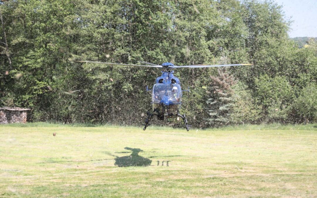 Der Start des Rettungshubschraubers