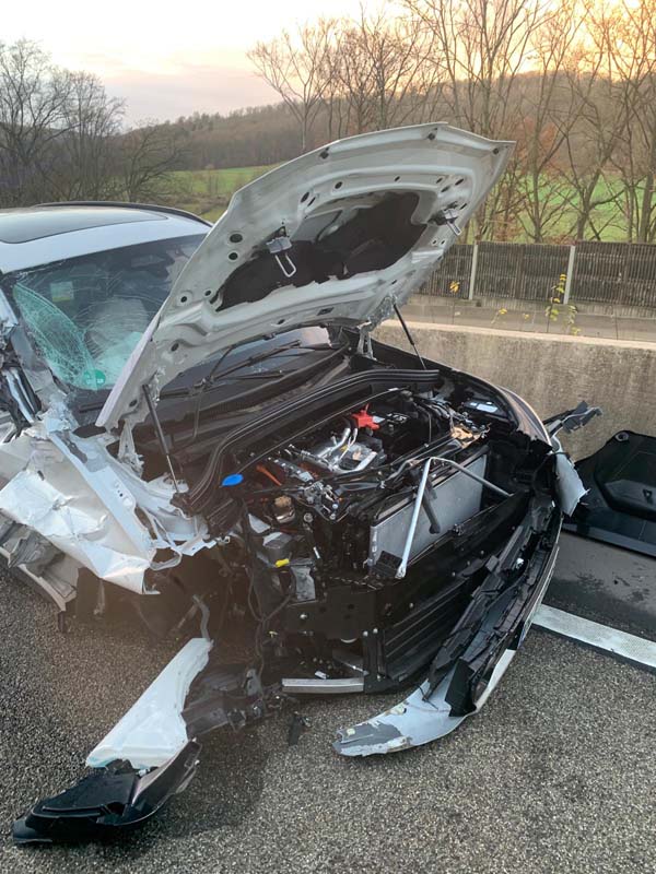 Unter der Leitung des Homberger Wehrführers sicherten etwa 18 Feuerwehrleute die Unfallstelle ab, sperrten die Fahrbahn und trennten die Hochvoltbatterie des E-Autos. Mithilfe einer Wärmebildkamera kontrollierten sie das Fahrzeug und unterstützten das Bergeunternehmen. Ein Rettungs- und ein Notarztteam versorgten den Fahrer. Die Polizeiautobahnstation Bad Hersfeld nahm den Unfall auf. Wie ein Polizeisprecher in Fulda berichtet, verlor der 21-jähriger Ukrainer mit seinem BMW aus bislang ungeklärter Ursache die Kontrolle über das Fahrzeug. Der BMW wechselte von der linken auf die mittlere Fahrspur und kollidierte mit dem Auflieger einer Sattelzugmaschine, die von einem 62-jährigen Mann aus Kassel gesteuert wurde. Durch den Aufprall wurde der BMW nach links gegen die Betongleitwand abgewiesen und kam nach etwa 70 Metern zum Stillstand. Der junge Fahrer erlitt leichte Verletzungen und wurde mit einem Rettungswagen in ein Krankenhaus gebracht. Sein Fahrzeug wurde bei dem Unfall völlig zerstört und musste abgeschleppt werden. Der Sachschaden beläuft sich auf mindestens 40.000 Euro.