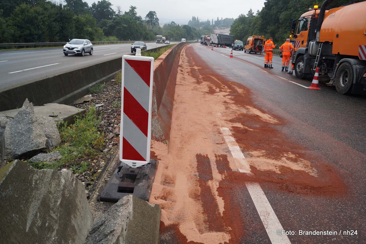 Melsunger Feuerwehrleute sicherten zunächst die Unfallstelle und pumpten dann den Kraftstoff aus dem zweiten Tank der Zugmaschine ab. Nachdem die Arbeit der Feuerwehr beendet war, sicherten Mitarbeiter der Autobahn GmbH die Unfallstelle ab und reinigten diese im Anschluss auch. Das Bergeunternehmen Gün zog den mit fünf Tonnen Leergut beladenen Sattelzug aus der Leitplanke und schleppte den Lkw ab. Der Verkehr staute sich auf der dreispurigen Autobahn auf einer Länge von rund zehn Kilometer.