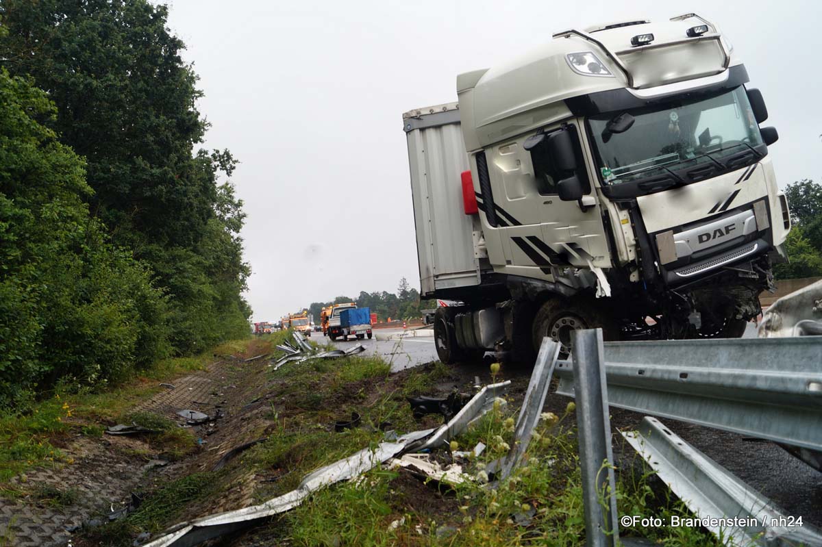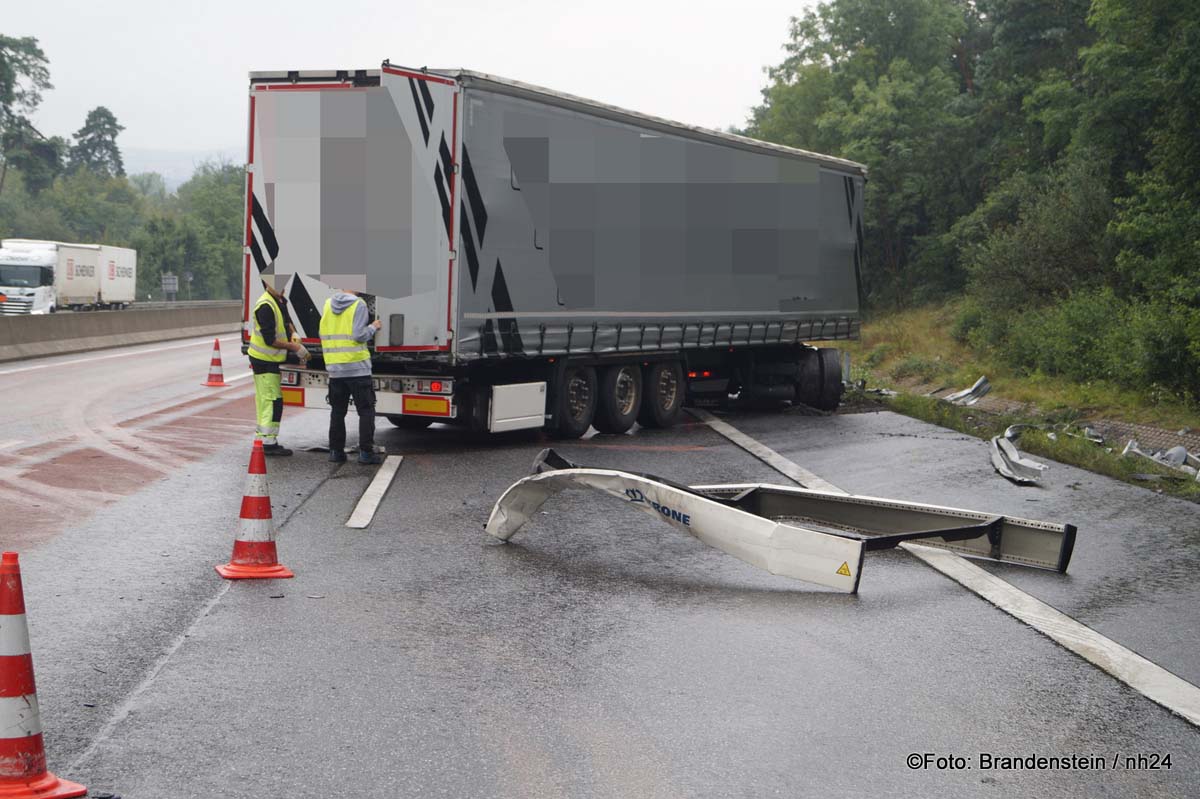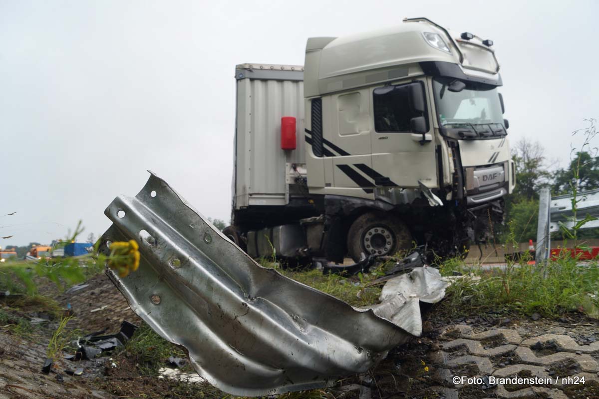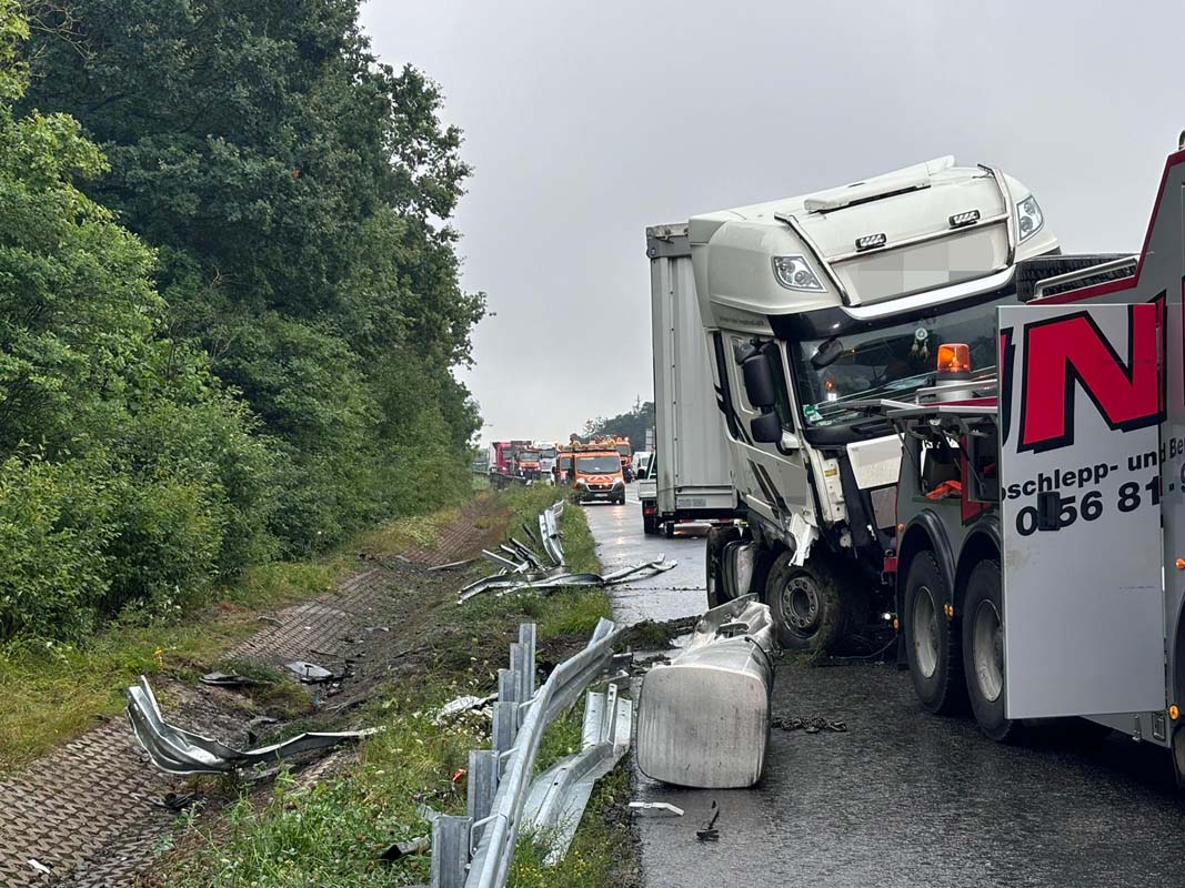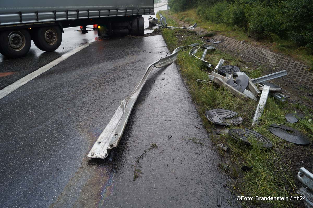 Sattelzug gerät auf A 7 ins Schleudern – 500 Liter Diesel ausgelaufen