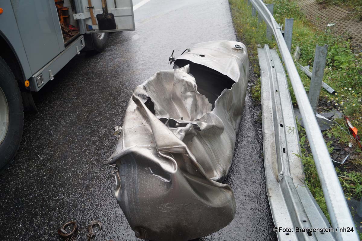 Der Sattelzug fuhr auf der rechten Spur, schleuderte dann zunächst gegen die Betonabtrennung auf der linken Fahrspur in Richtung Kassel, wurde von dort abgewiesen, schleuderte erneut über die Fahrbahn und prallte gegen die Leitplanke neben der Standspur. Die Bleche bohrten sich dabei in die Zugmaschine. Zudem wurde ein Tank der Zugmaschine ab- und aufgerissen, und rund 500 Liter Diesel flossen über die abschüssige Fahrbahn.