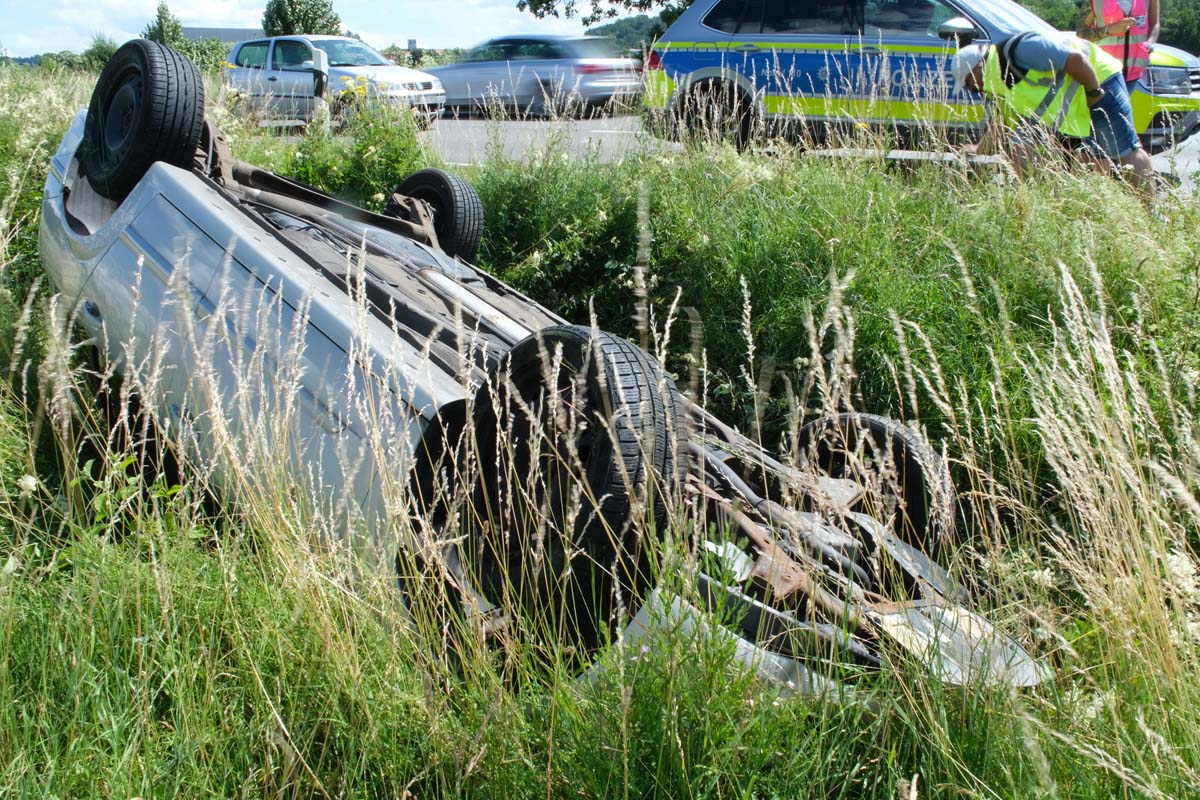 HOMBERG (EFZE). Am Freitag geriet eine Opel-Fahrerin (28) gegen 11:25 Uhr auf der Bundesstraße 254 in Homberg (Efze) in Fahrtrichtung Schwalmstadt von der Straße ab, fuhr einen Abhang hinunter und kam auf dem Dach liegend zum Stillstand. Der Unfall ereignete sich wenige hundert Meter hinter der Abfahrt Homberg/Caßdorf.