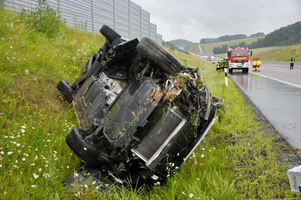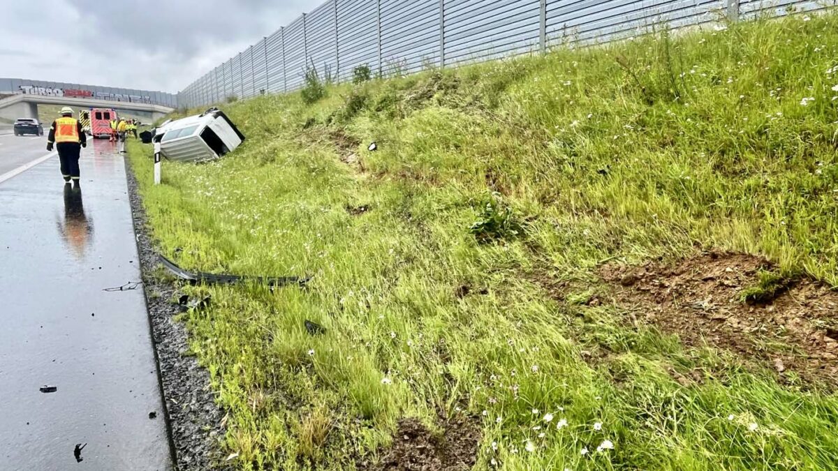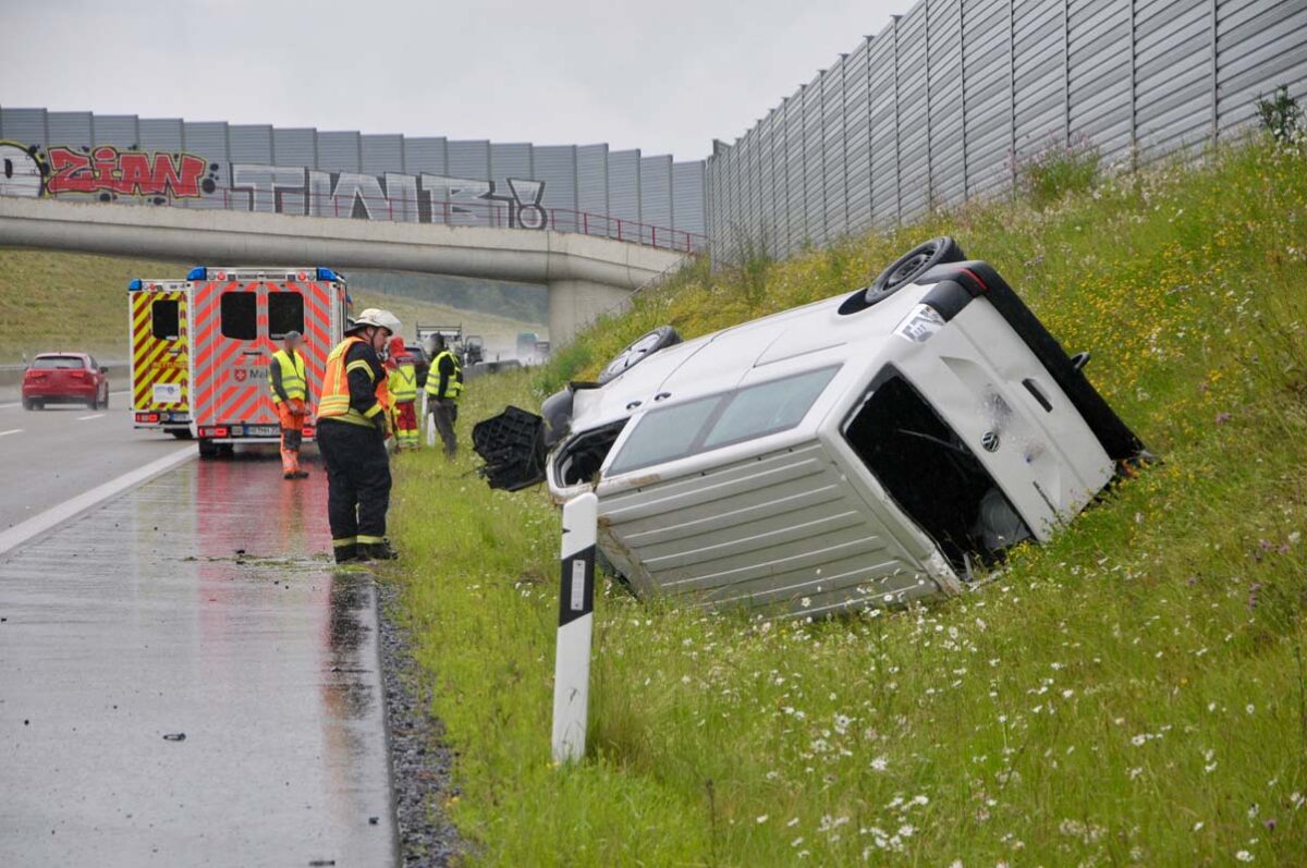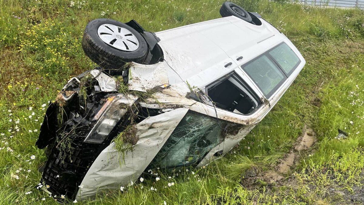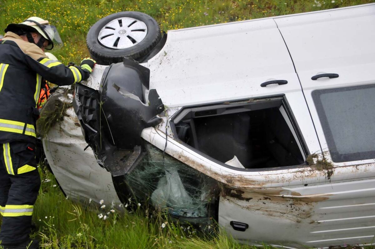 Der Aufprall führte dazu, dass der VW Bus nach rechts von der Fahrbahn abkam, auf die Fahrerseite kippte und im Straßengraben zum Stillstand kam.