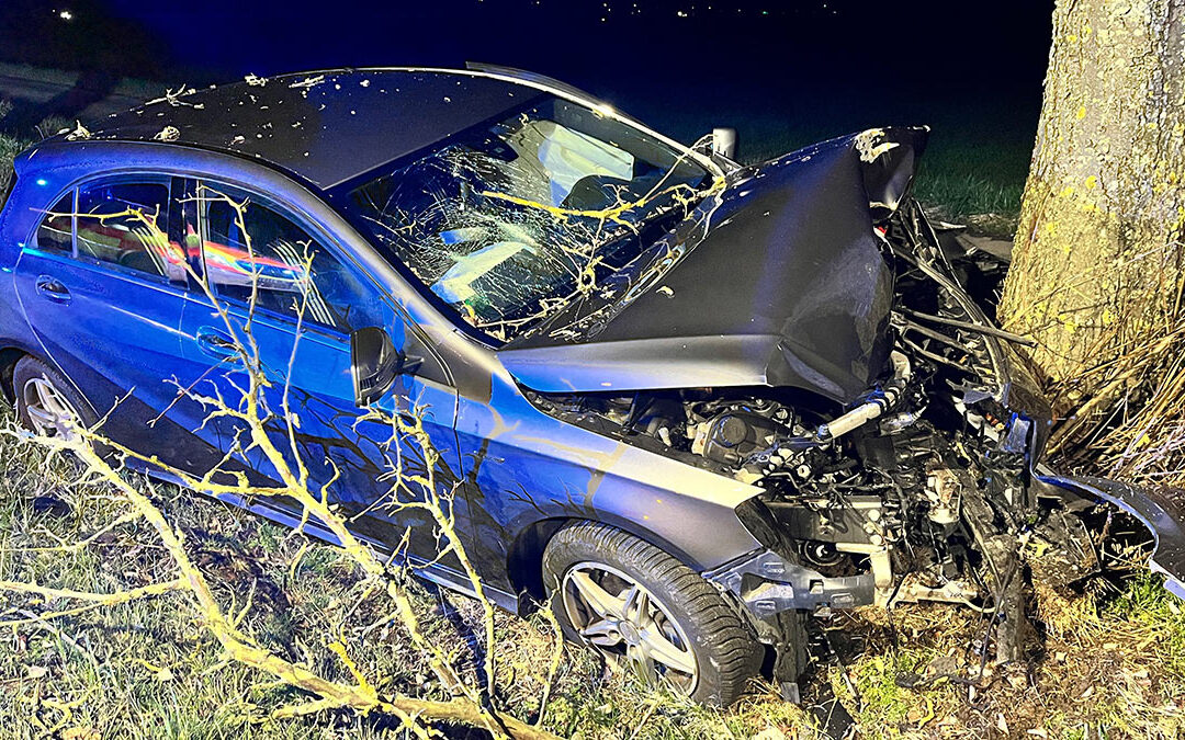Verkehrsunfall mit glimpflichem Ausgang: Fahrzeug prallt frontal gegen Baum