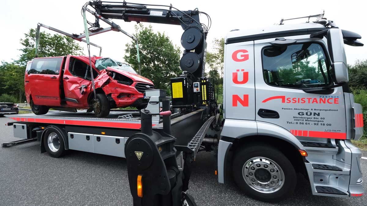 Das E-Call-System des Fahrzeugs hatte den Notruf automatisch ausgelöst. Die Beifahrerseite des Kleinbusses wurde stark beschädigt. Nach Polizeiangaben erlitt die Fahrerin schwere, aber nicht lebensbedrohliche Verletzungen. Rettungskräfte brachten sie nach der Erstversorgung in das Klinikum Kassel.