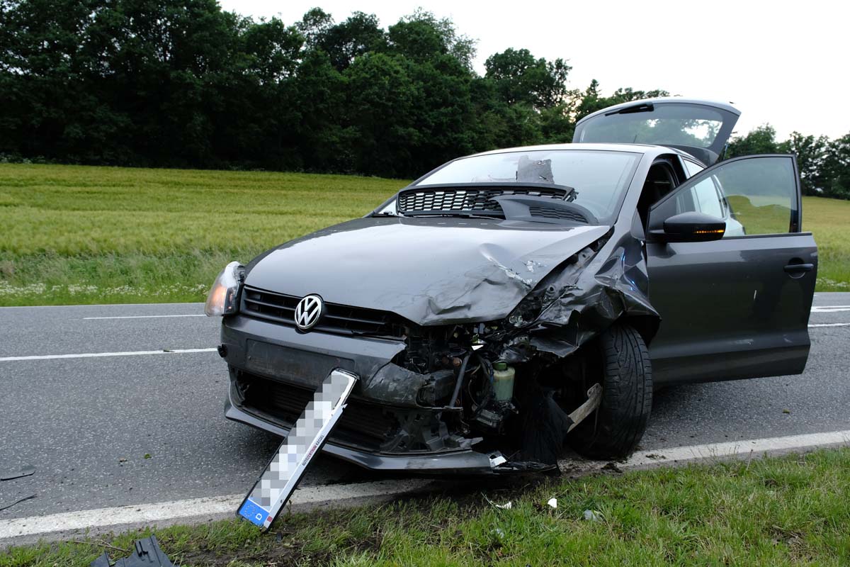 Eine Autofahrerin (39) wollte mit ihrem weißen Hyundai von Waltersbrück nach links in Richtung Schlierbach abbiegen und übersah dabei den VW-Polo eines 18-Jährigen, der von Schlierbach in Richtung des Autobahnzubringers fuhr. Der junge Mann erfasste mit seinem Polo den Hyundai hinten links. Während der Hyundai in einen Wirtschaftsweg und mit dem Heck gegen die gegenüberliegende Leitplanke geschleudert wurde, drehte sich der Polo nach dem Aufprall und kam entgegen der Fahrtrichtung zum Stehen. Ersthelfer, darunter eine HVO („Helfer vor Ort“), und anschließend ein Ziegenhainer Notarzt des Asklepios-Klinikums in einem DRK-Notarzteinsatzfahrzeug und ein Malteser Rettungsteam aus Jesberg, versorgten die beiden Fahrzeuginsassen, die nach ihrem Transport das Krankenhaus im Anschluss eingehender Untersuchungen wieder verlassen konnten. An den beiden Fahrzeugen war augenscheinlich hoher Schaden entstanden, der vor Ort nicht eingeschätzt wurde. Zu Verkehrsbehinderungen kam es nicht. Eine Streifenwagenbesatzung der Polizeistation Homberg nahm den Unfall auf.