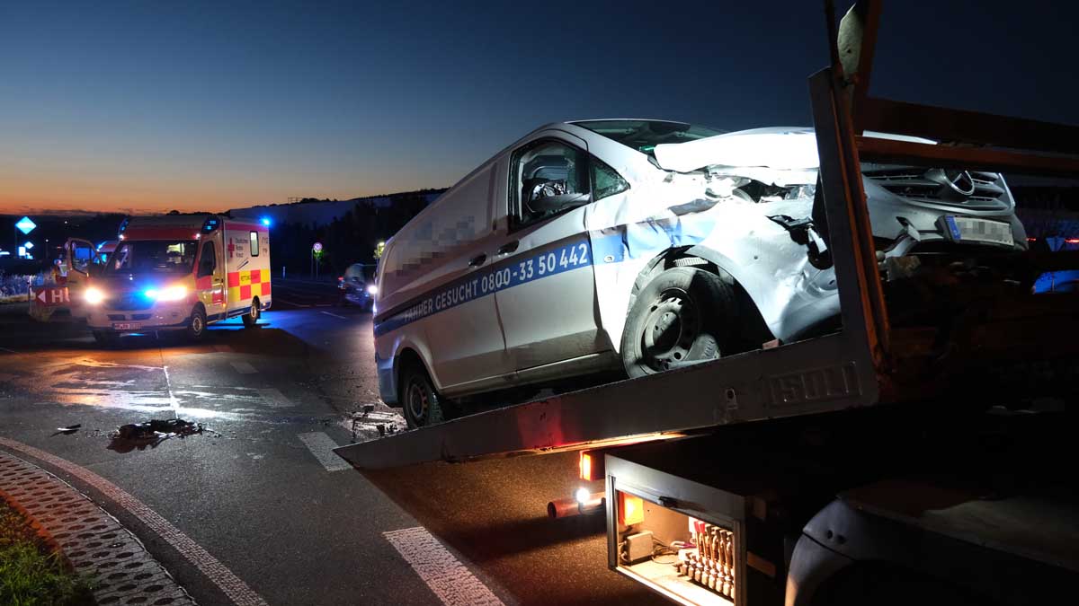 An beiden Fahrzeugen entstand Schaden im unteren fünfstelligen Bereich; beide Autos mussten geborgen werden.