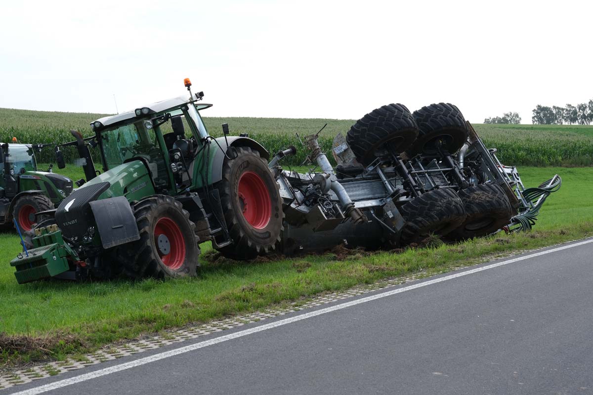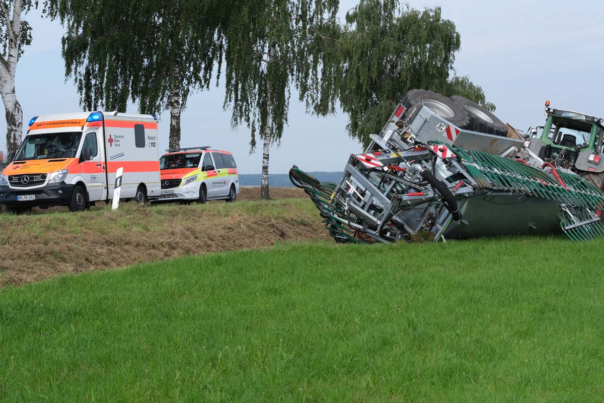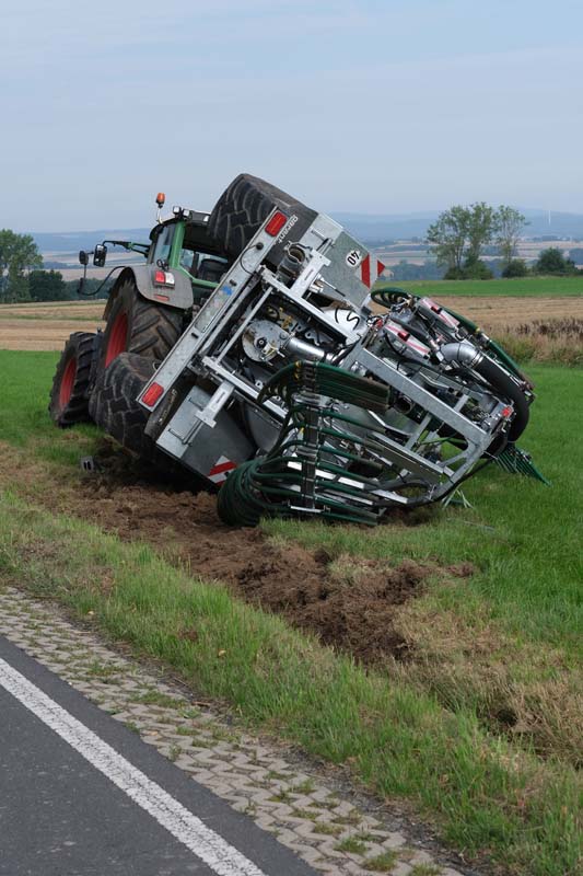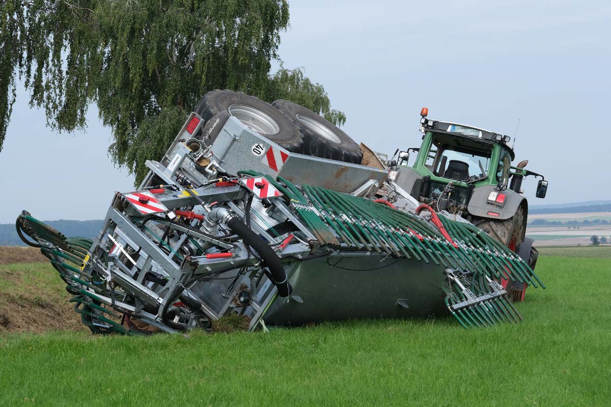 Der 49 Jahre alte Mann fuhr von Röllshausen in Richtung Merzhausen, als er aus bislang unbekannten Gründen nach rechts von der Fahrbahn geriet. Das Traktor-Gespann fuhr in der Folge einen Abhang hinunter, wobei das angehängte und voll beladene Güllefass auf der Wiese auf die rechte Seite kippte und der Traktor zum Stehen kam. Das Fass hielt dem Unfall Stand und blieb dicht. Ersthelfer kümmerten sich bis zum Eintreffen der Rettungskräfte um den Fahrer. Die Höhe des Schadens konnte noch nicht geschätzt werden. Zu Verkehrsbehinderungen kam es nicht. Vor Ort waren ein Rettungs- und ein Notarztteam sowie eine Streifenwagenbesatzung der Polizeistation Schwalmstadt.