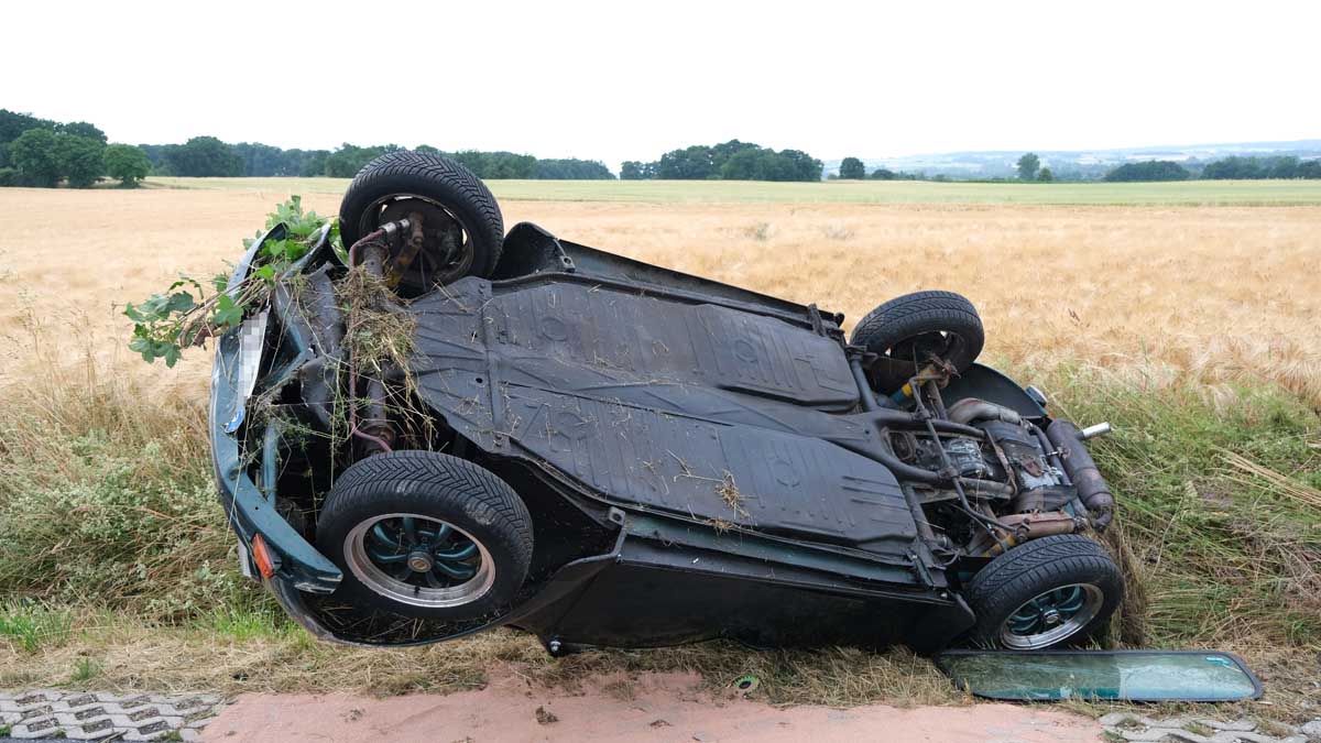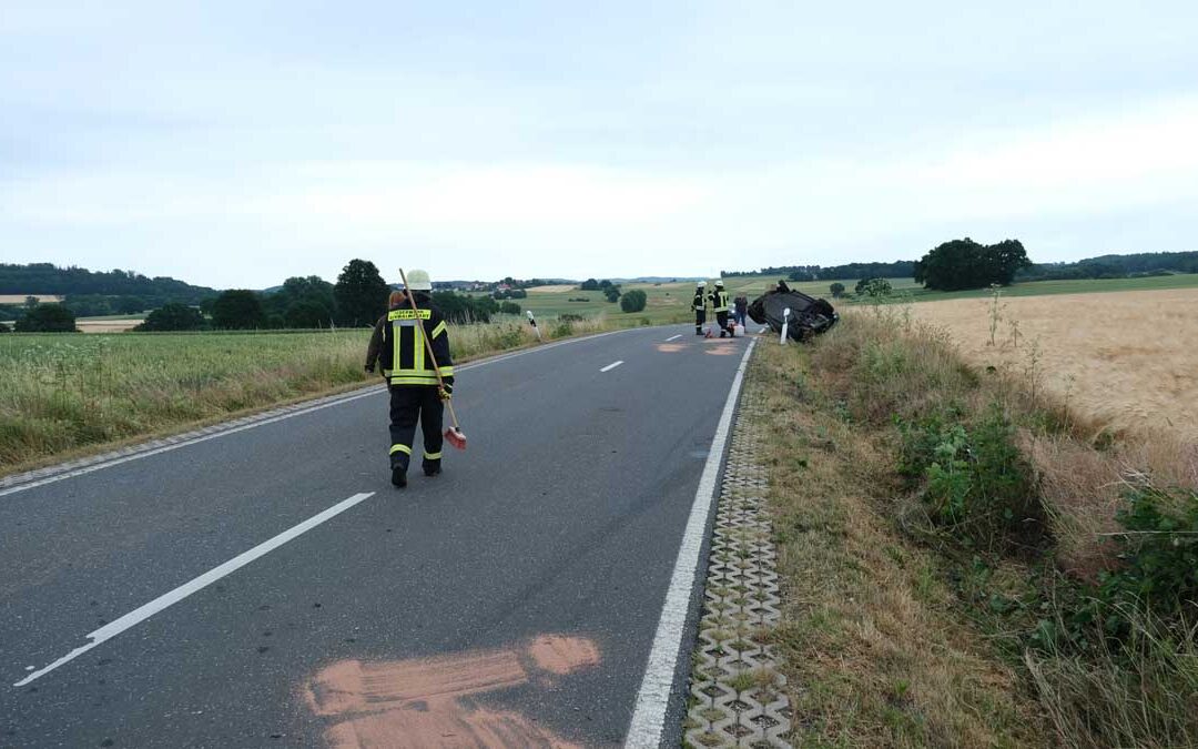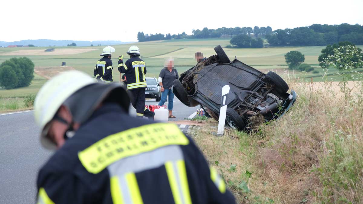 Die Fahrerin eines VW Käfer war gegen 18 Uhr von Niedergrenzebach in Richtung Obergrenzebach unterwegs. In einer Rechtskurve geriet sie auf der durch einen Regenschauer noch feuchten Fahrbahn ins Schleudern, kam nach rechts von der Straße ab, überschlug sich im Straßengraben und blieb mit ihrem Fahrzeug auf dem Dach liegen.