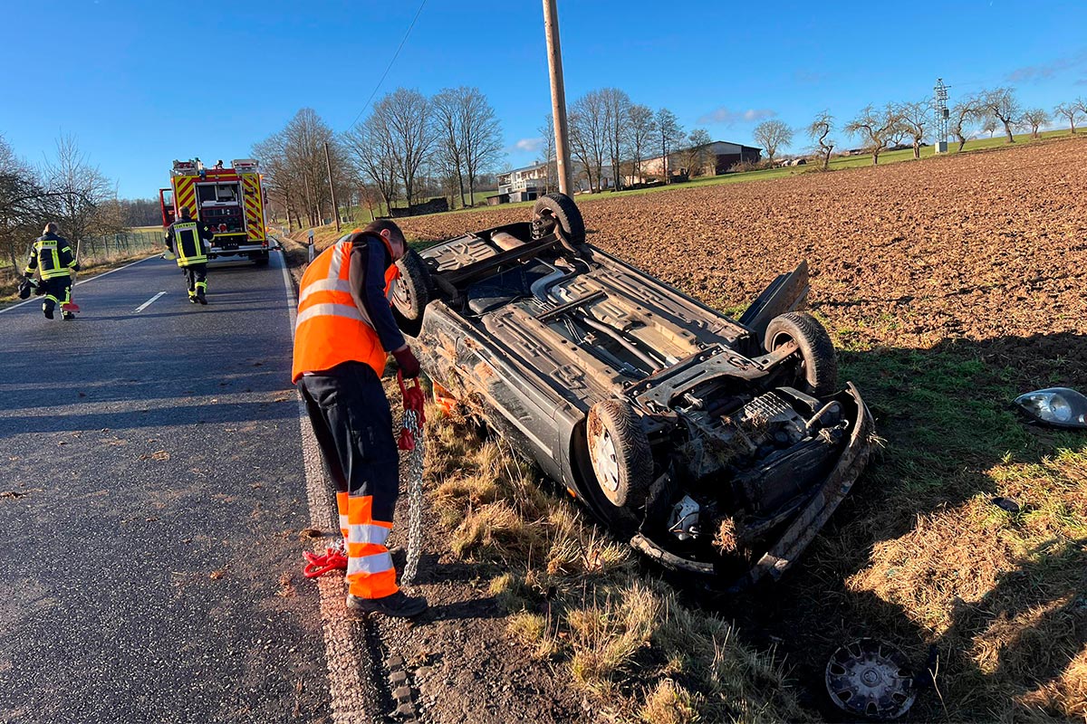 Autofahrerin überschlägt sich mit Pkw – Leicht verletzt ins Krankenhaus