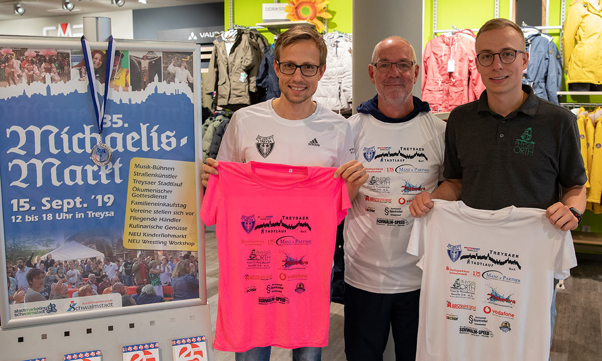 TREYSA. Zum Michaelismarkt am kommenden Sonntag findet in Treysa der 33. Stadtlauf des ESV Jahn Treysa statt. Dazu trafen sich bei Intersport Gundlach am Mittwoch einige Sponsoren des Laufs, ohne deren finanzielles Engagement ein solches Ereignis nicht zu meistern wäre, um die aktuellen Funktions-Laufshirts vorzustellen.