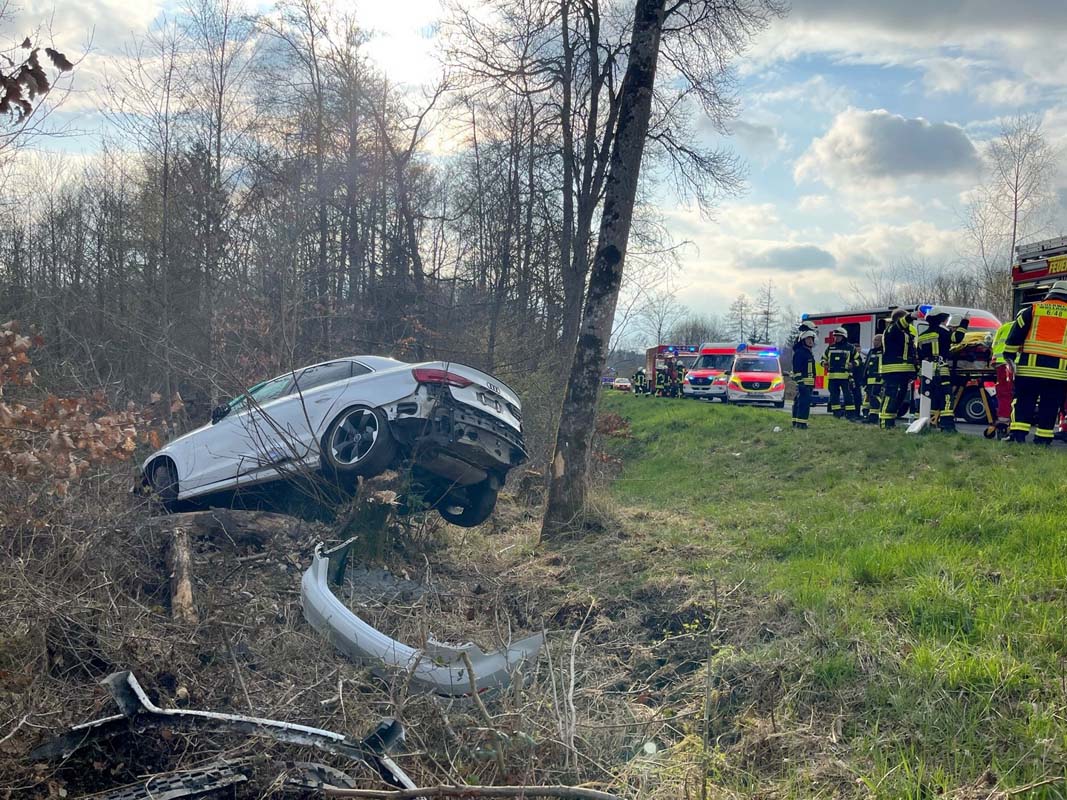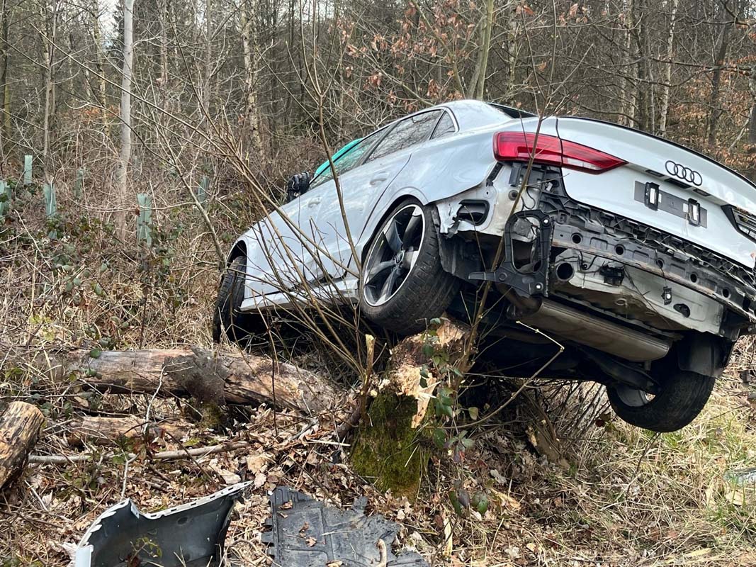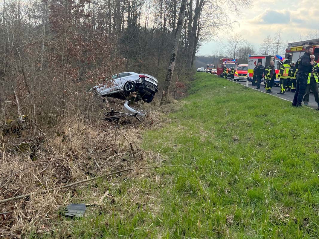 Gudensberg wollte zwei vorausfahrende Fahrzeuge, den Lkw und einen BMW, überholen. Während des Überholvorgangs soll der BMW nach Zeugenaussagen ausgeschert sein, um den Lkw ebenfalls zu überholen. Um einen Zusammenstoß mit dem ausscherenden Pkw zu verhindern, wich die 22-Jährige nach links aus und kam mit ihrem Fahrzeug von der Straße ab. Der Audi touchierte einen Baum und kam auf einem Baumstumpf zum Stillstand. Die drei Insassen des Audi, die 22 Jahre alte Fahrerin, ein 21 Jahre alter Mann aus Kassel und ein 40-Jähriger aus Grebenstein, erlitten schwere Verletzungen und mussten nach ihrer Erstversorgung an der Unfallstelle in Kasseler Krankenhäuser gebracht werden.
