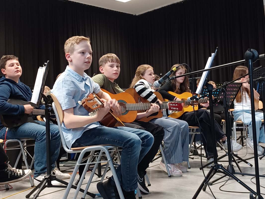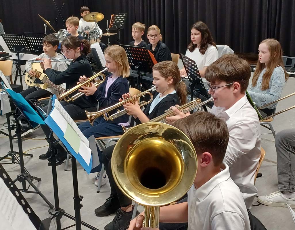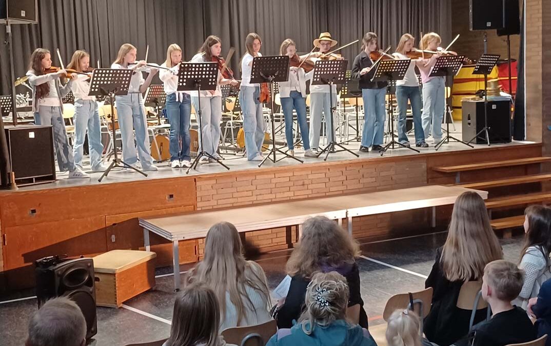 Der Schulchor unter Leitung von Stefanie Sievers eröffnete den Abend mit Liedern aus dem Disney-Repertoire und internationalen Titeln. Die Streicher-AG, geleitet von Anastasia Simon, spielte Werke von Kinderliedern bis zu Klassikbearbeitungen. Die Junior Band überzeugte unter Eva Kirchner mit Film- und Jazzmusik, unterstützt von Schulleiter Mario Cimiotti am Dirigentenpult.